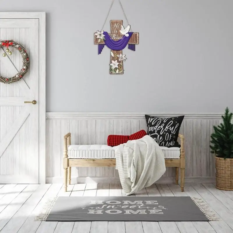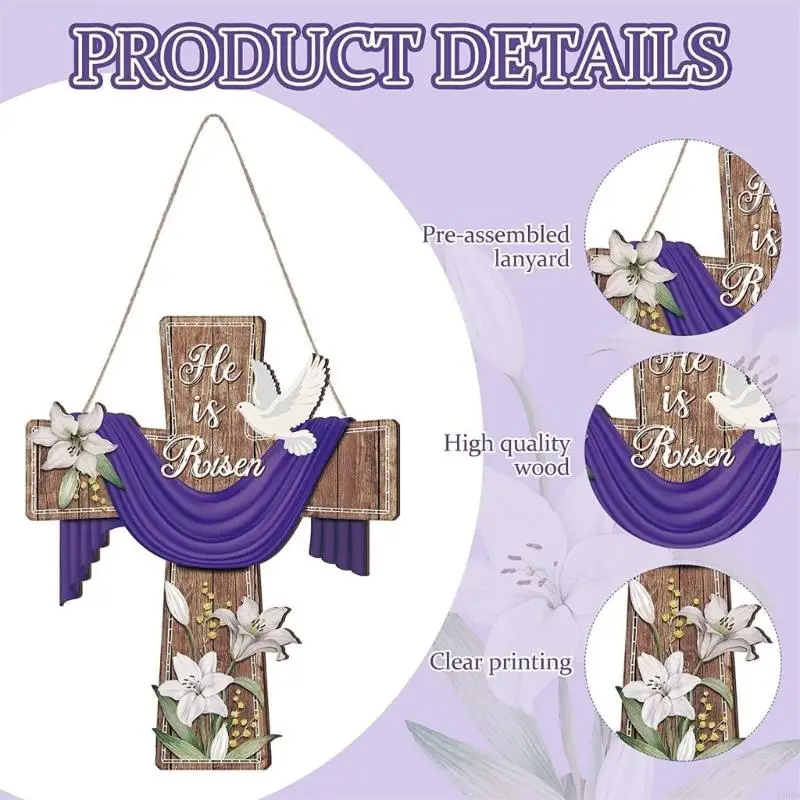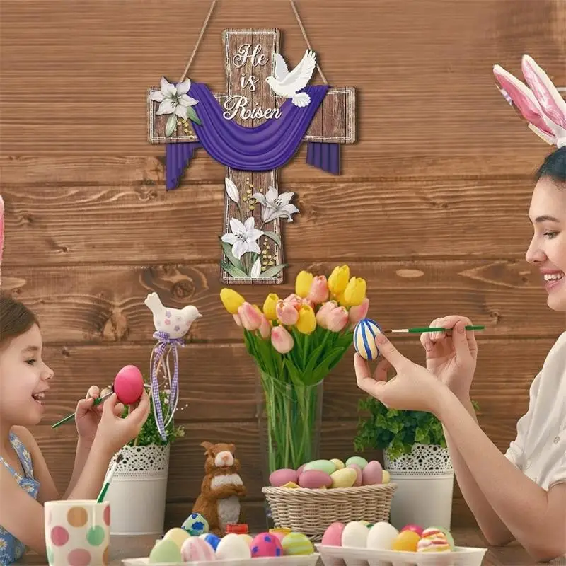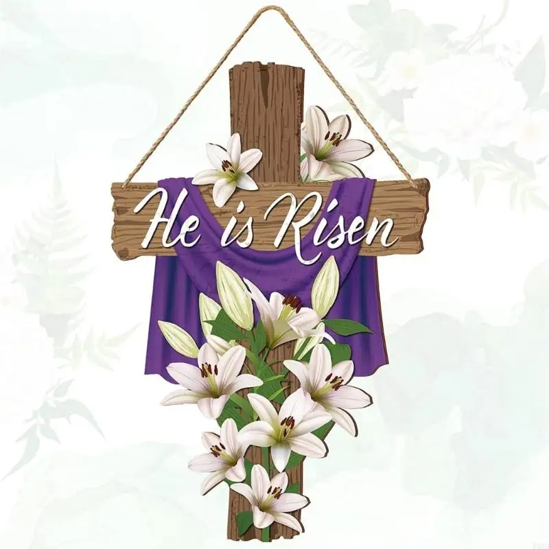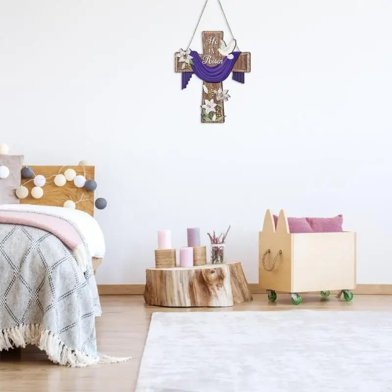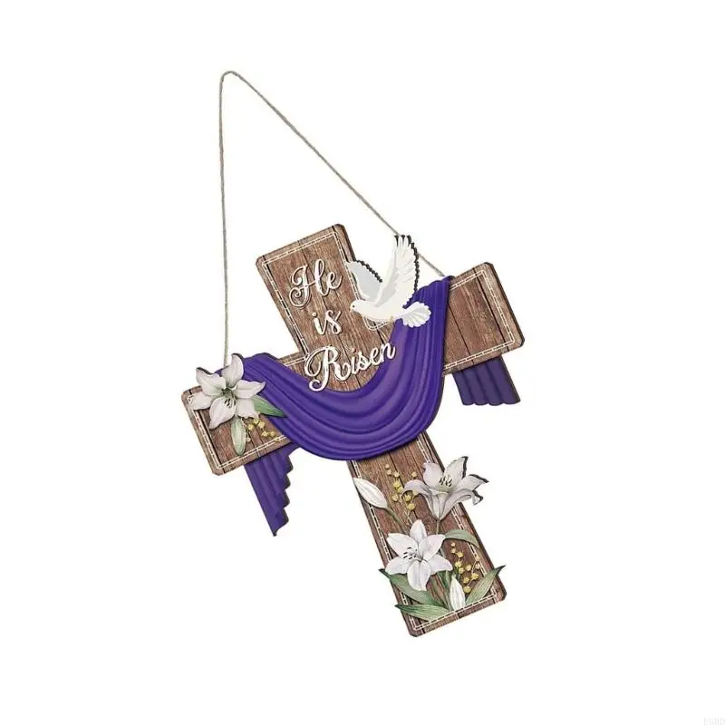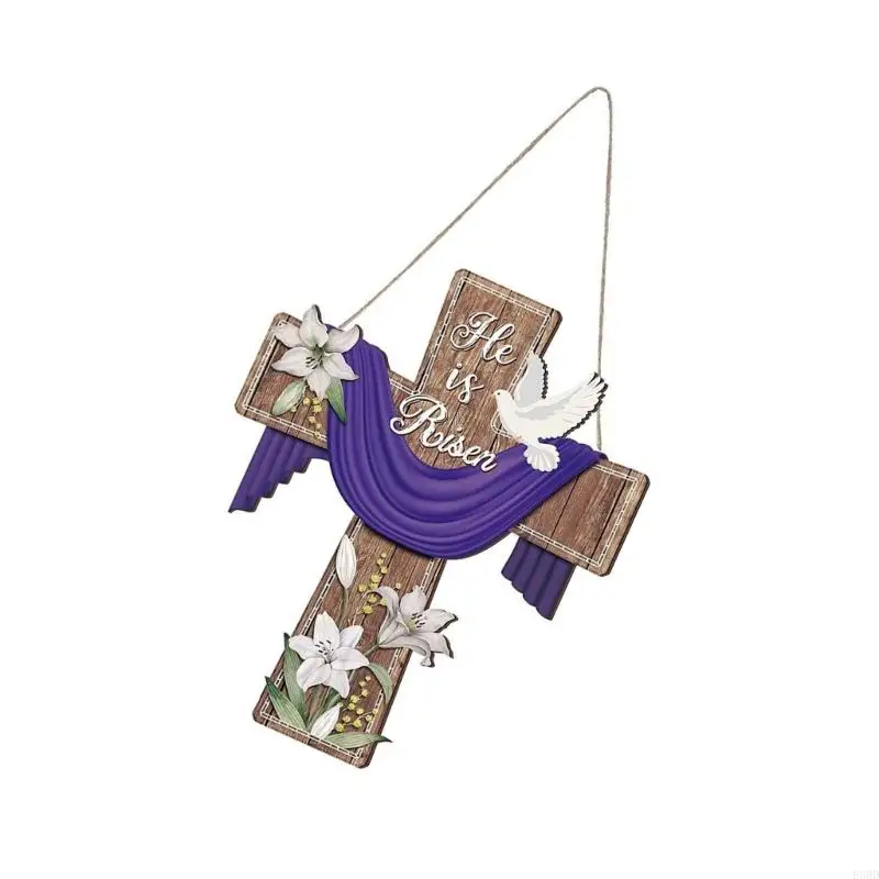 E8BD Elegant Wooden Crosses Door Sign Hanging Decoration for Easters Celebration Gift
