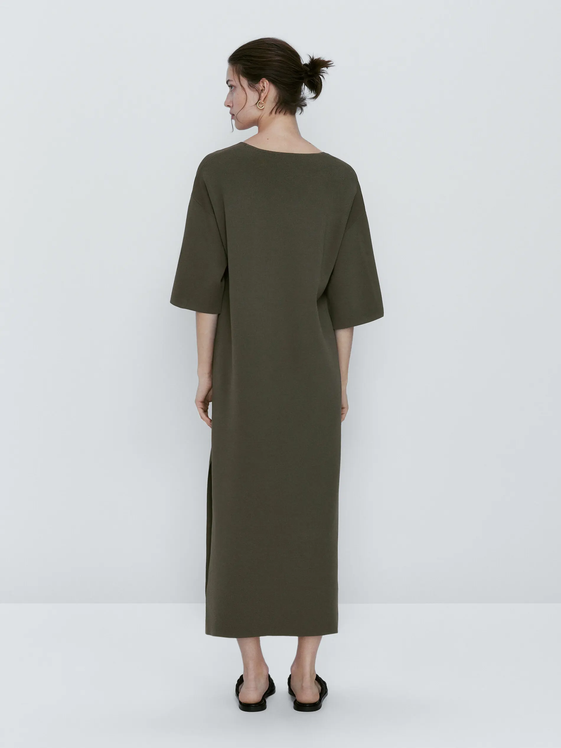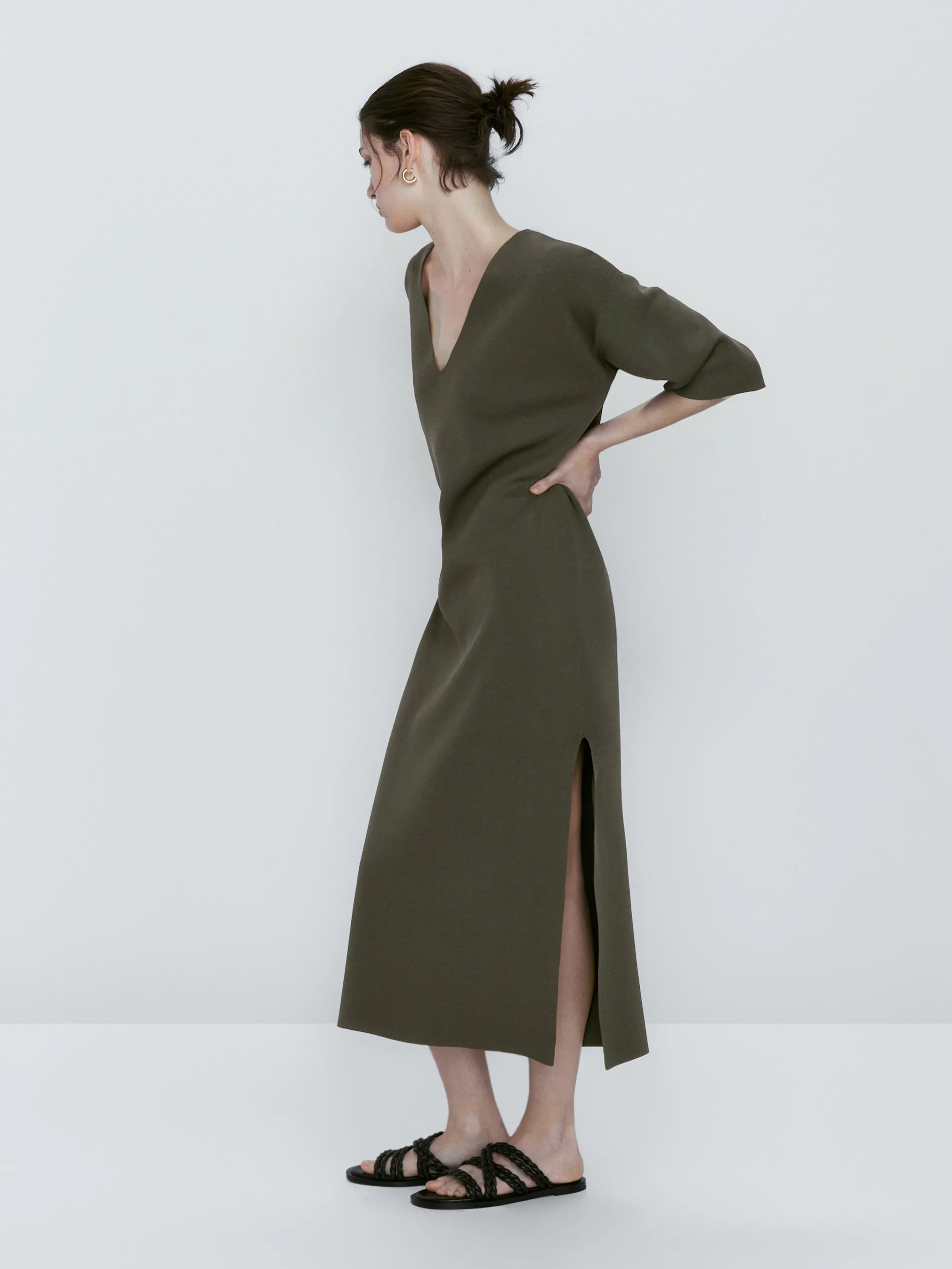 Ethereal MD 2024 women's spring new style of Elegant minimalist extended knit dress with high neck