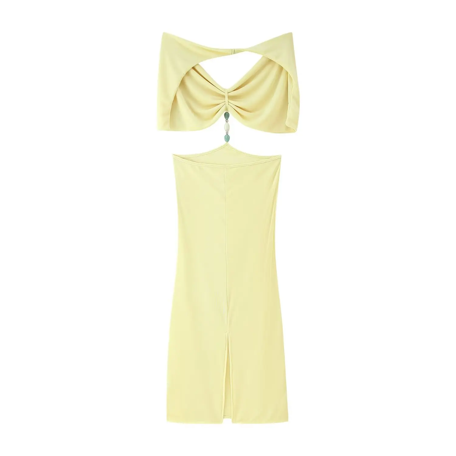 European and American style 2025 new shawl pleated handmade beads sexy backpack hip dress