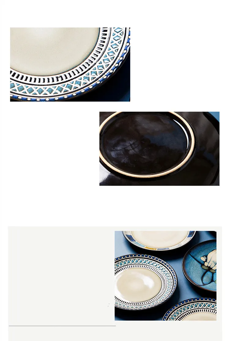 European Ceramic Cutlery Household Dishes Retro Kiln Glaze Porcelain Plate Handmade Ceramic Dinner Plates Kitchen Accessories
