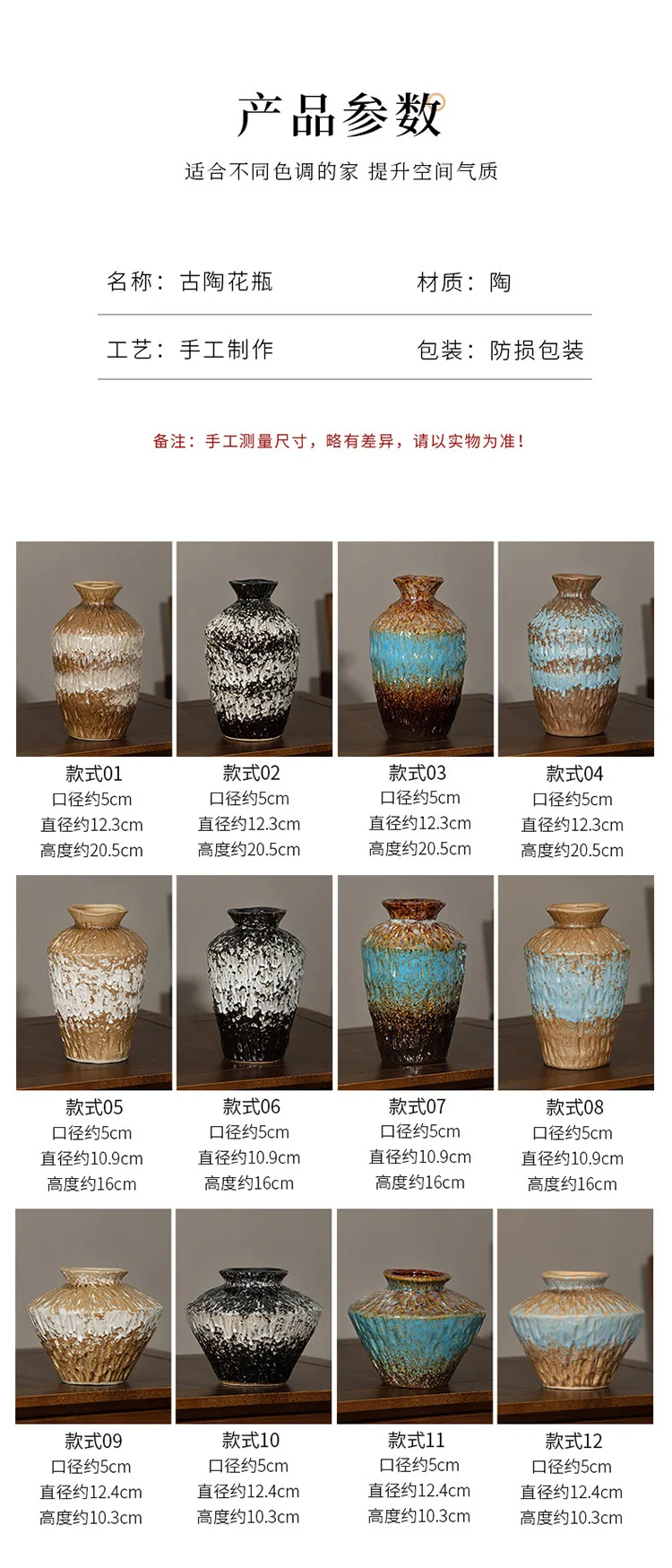 European Style Retro Style Ceramic Vase Living Room Advanced Sense Coarse Clay Pot Simple Dried Flower Arrangement Decoration