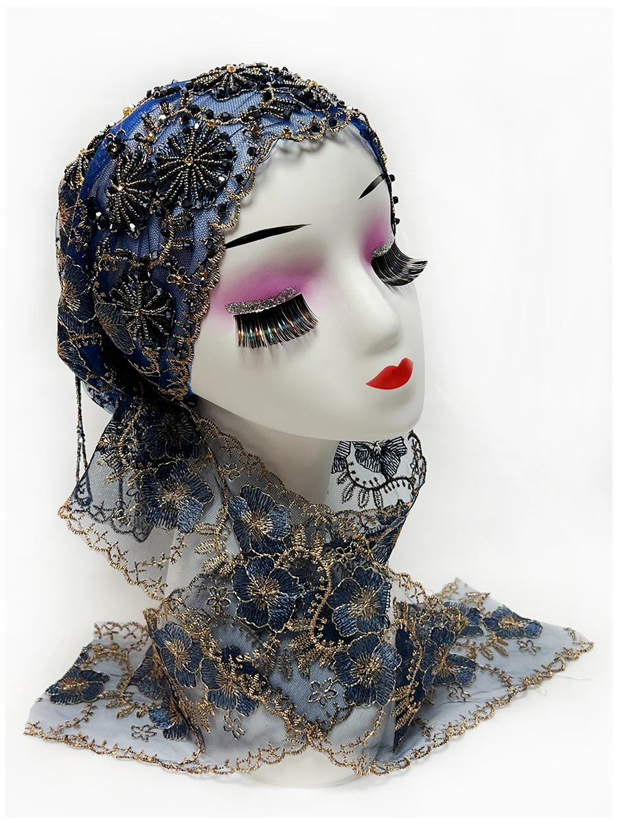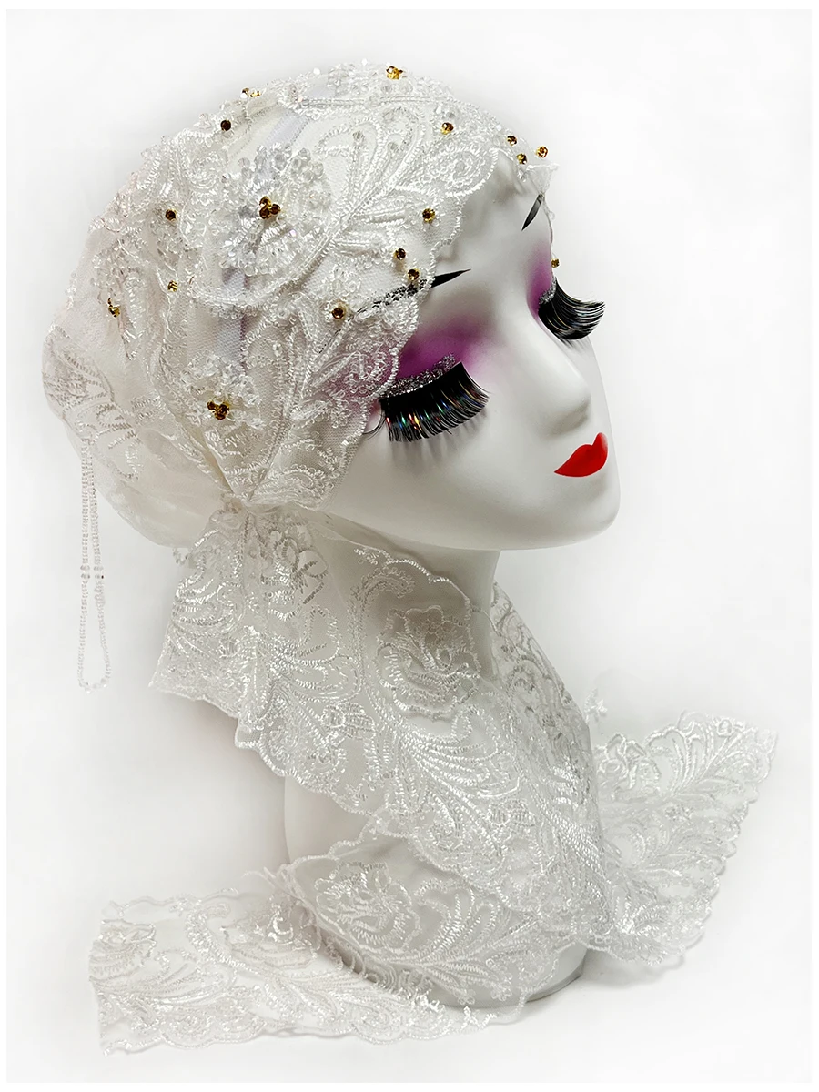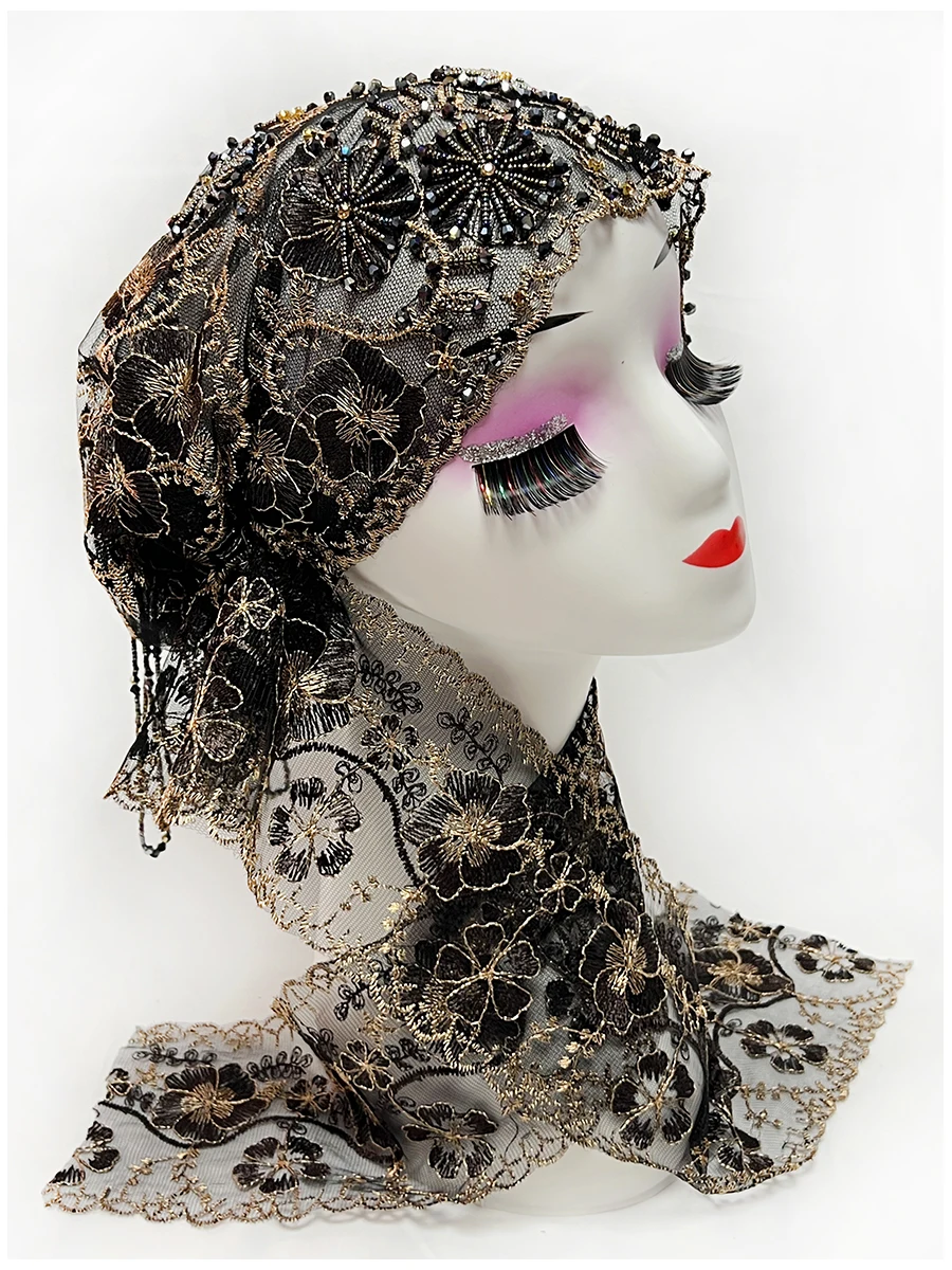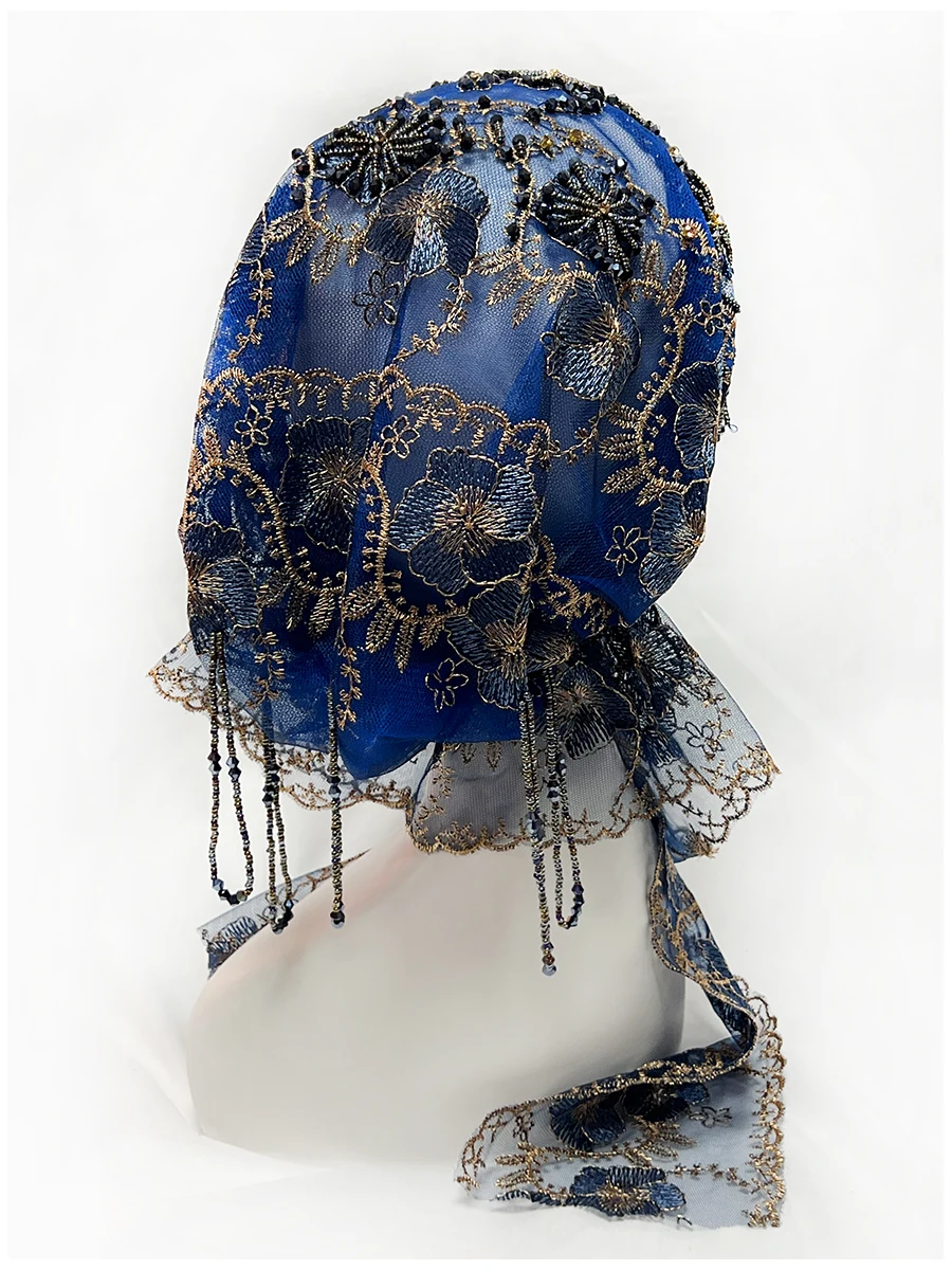 Explosive Head Cover Mesh Fabric Hand-Embroidered Hanging Beaded String acrylic Ribbon Hats Dubai New Muslim Arabic Worship Hat