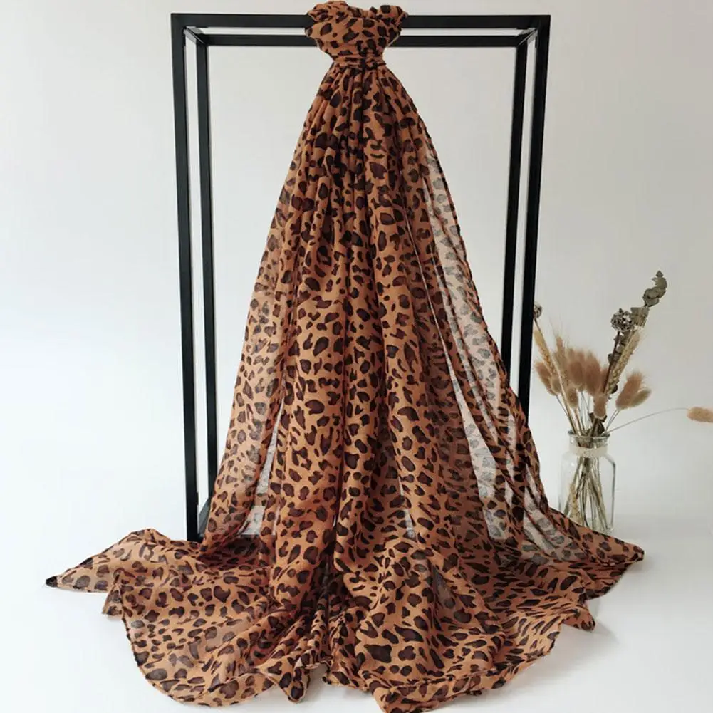 Fashion Leopard Printed Shawl For Women Long Wide Chiffon Scarves Muslim Costumes Accessories Spring Summer Lady Hijab Wraps