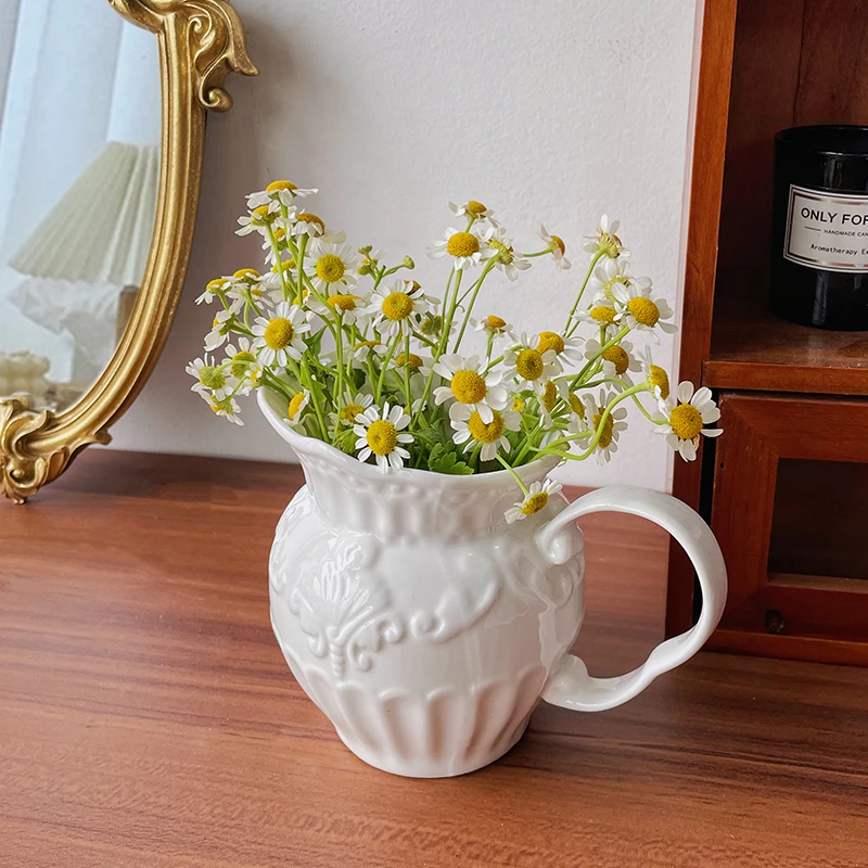 Fashion Retro Relief Ceramic Vase Living Room Desktop Decoration White Milk Pot Vase Home Decoration