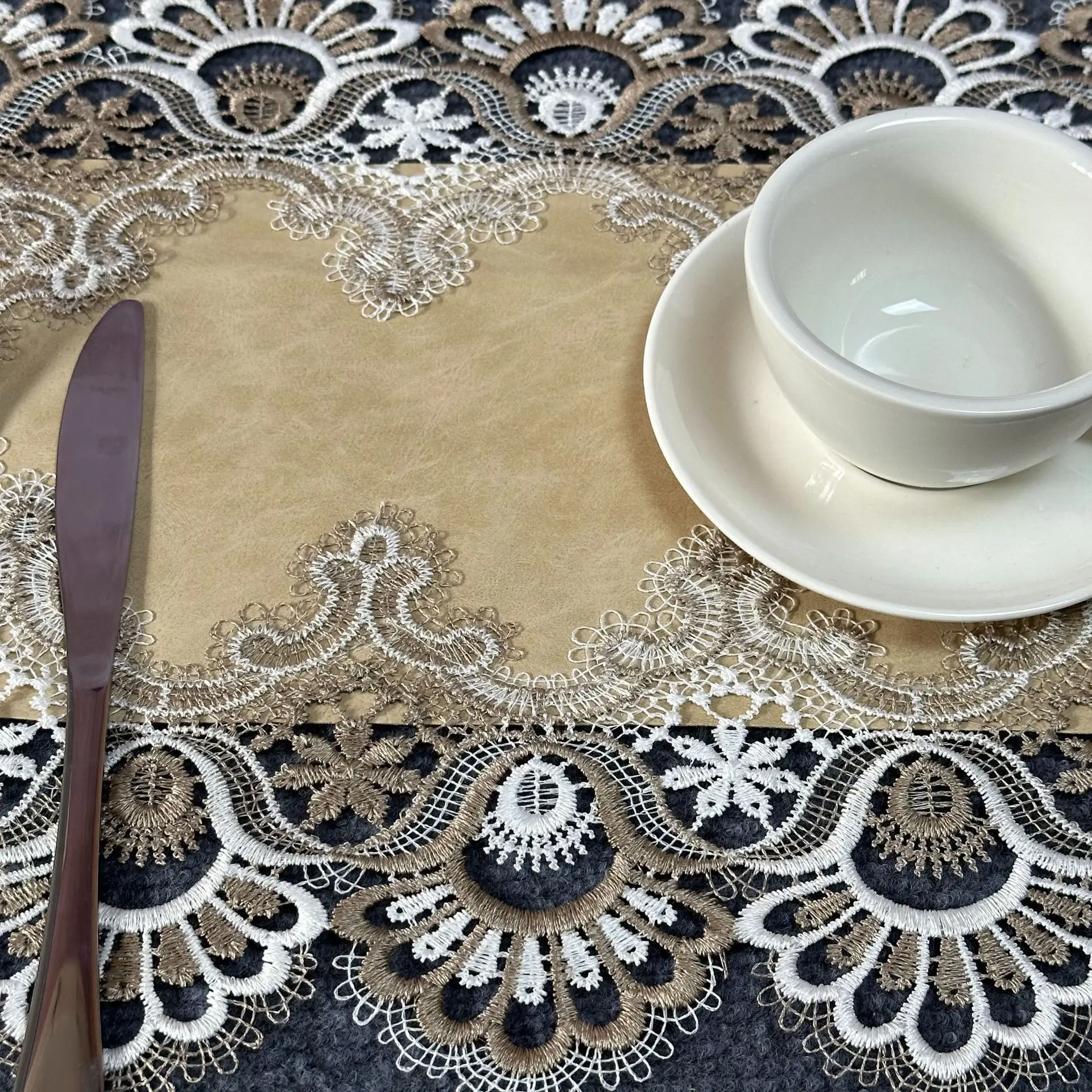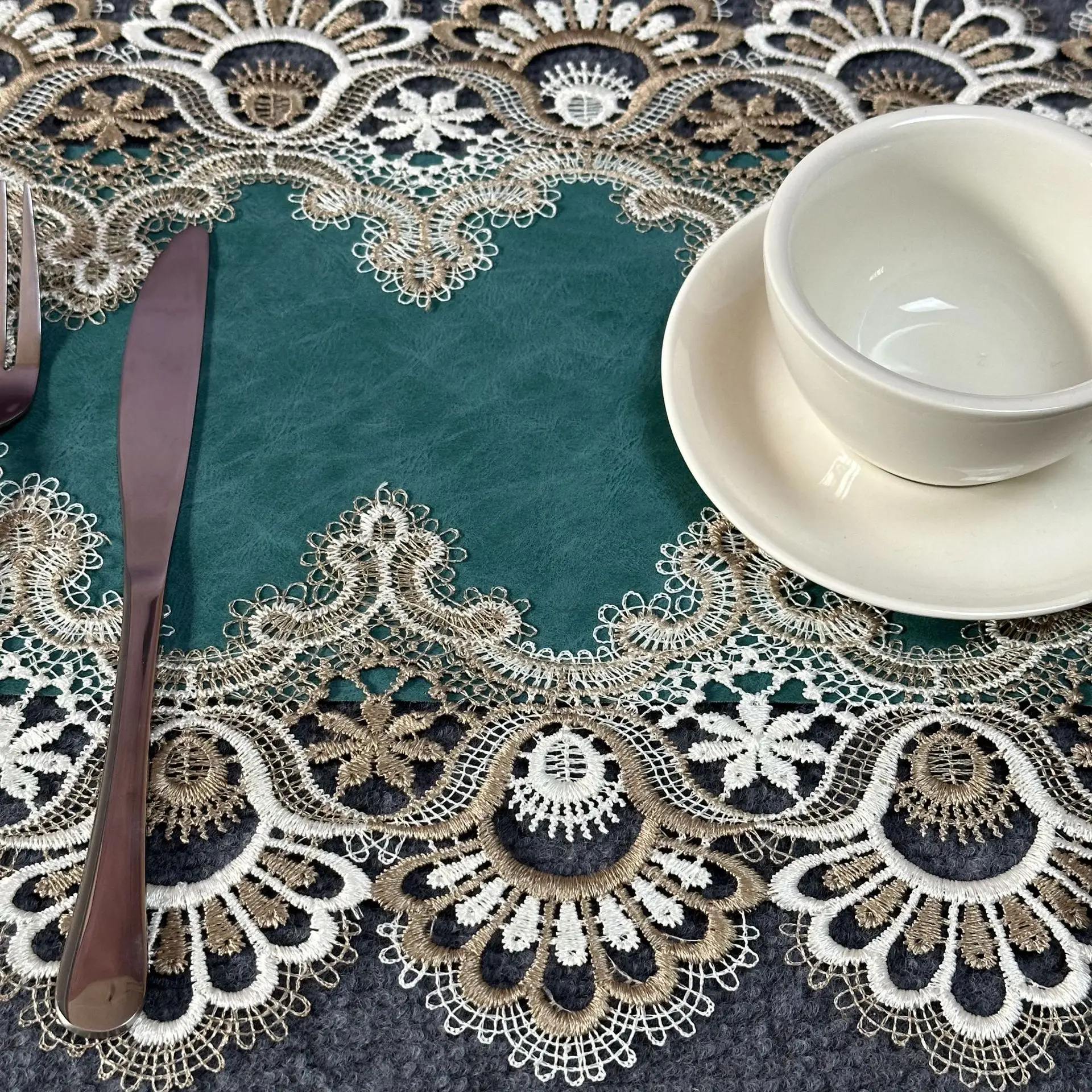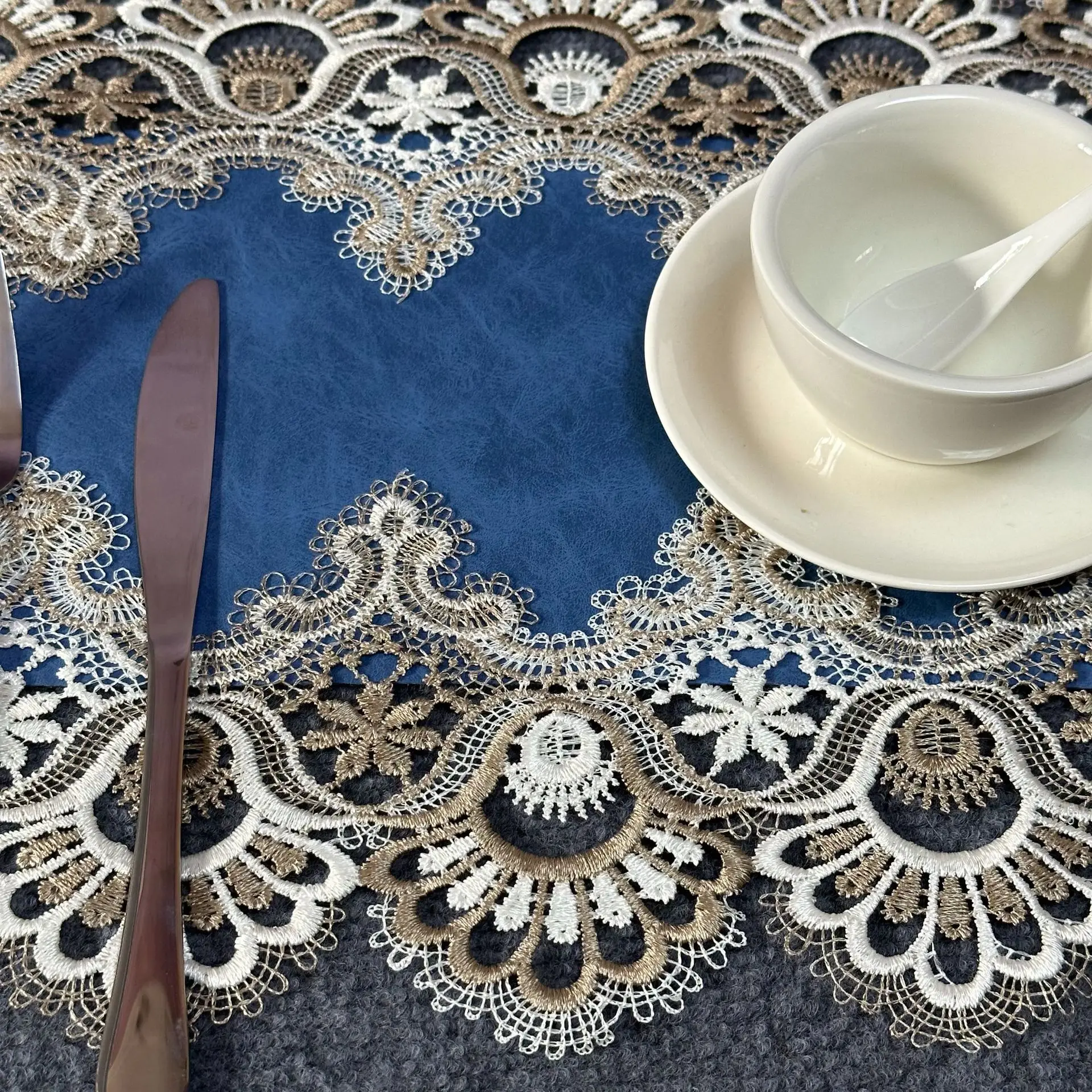 Fashionable Lace Table Cloth European Style Floral Embroidery Table Cloth Waterproof PU Mat Table Ornament