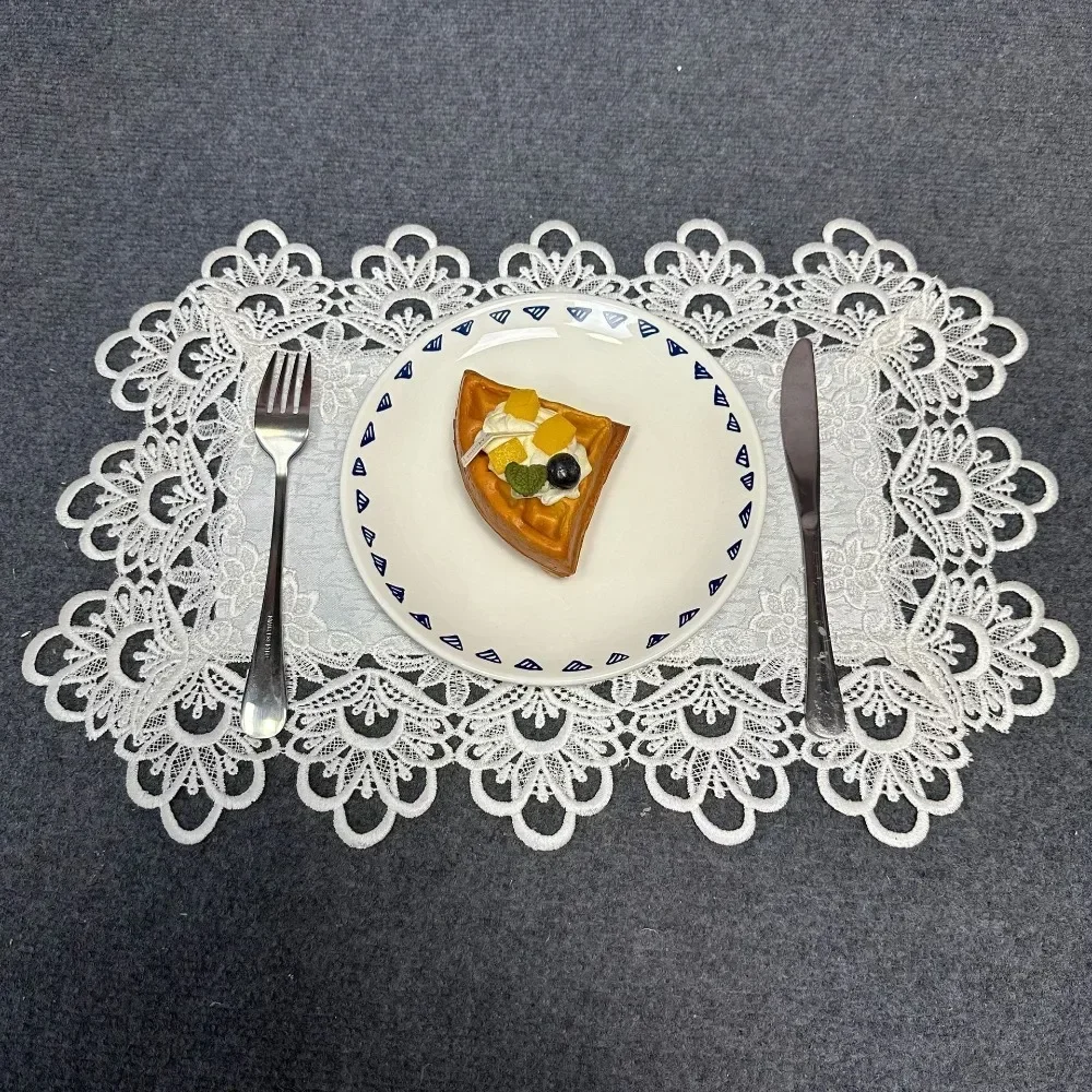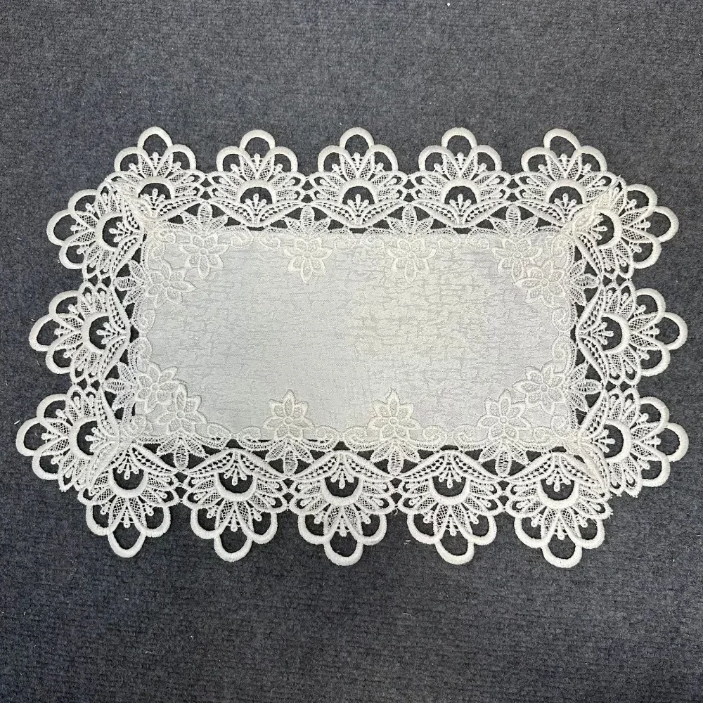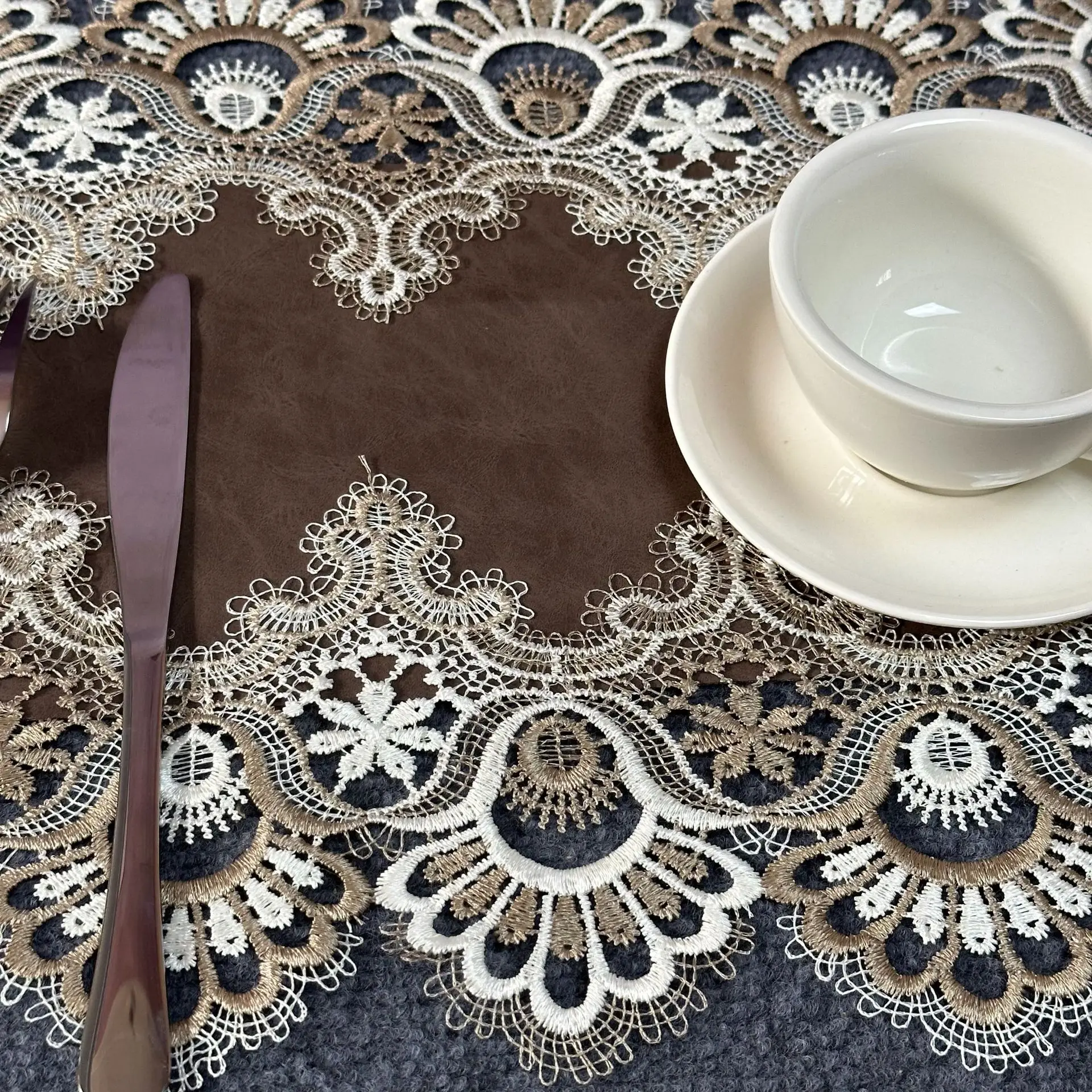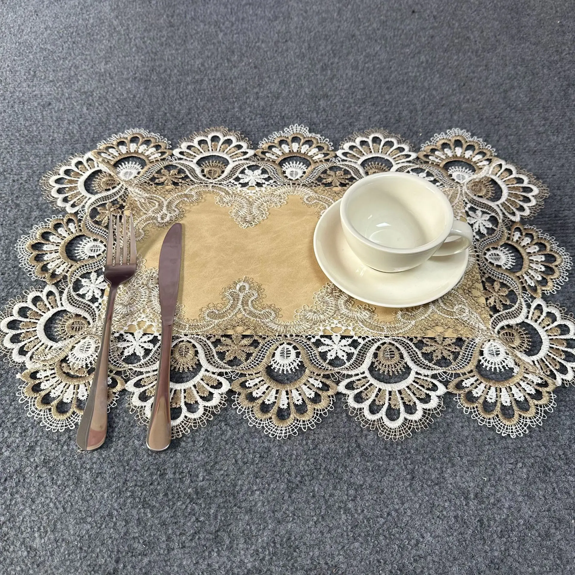Fashionable Lace Table Cloth European Style Floral Embroidery Table Cloth Waterproof PU Mat Table Ornament