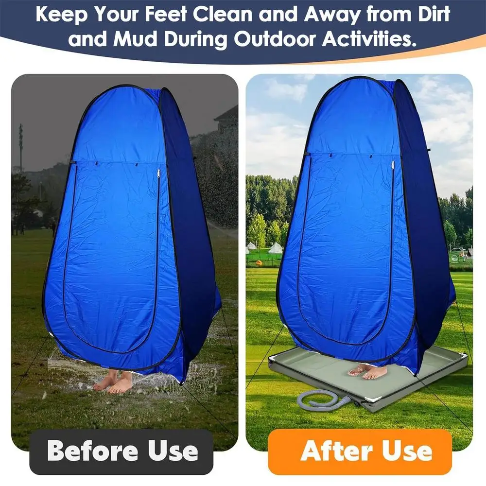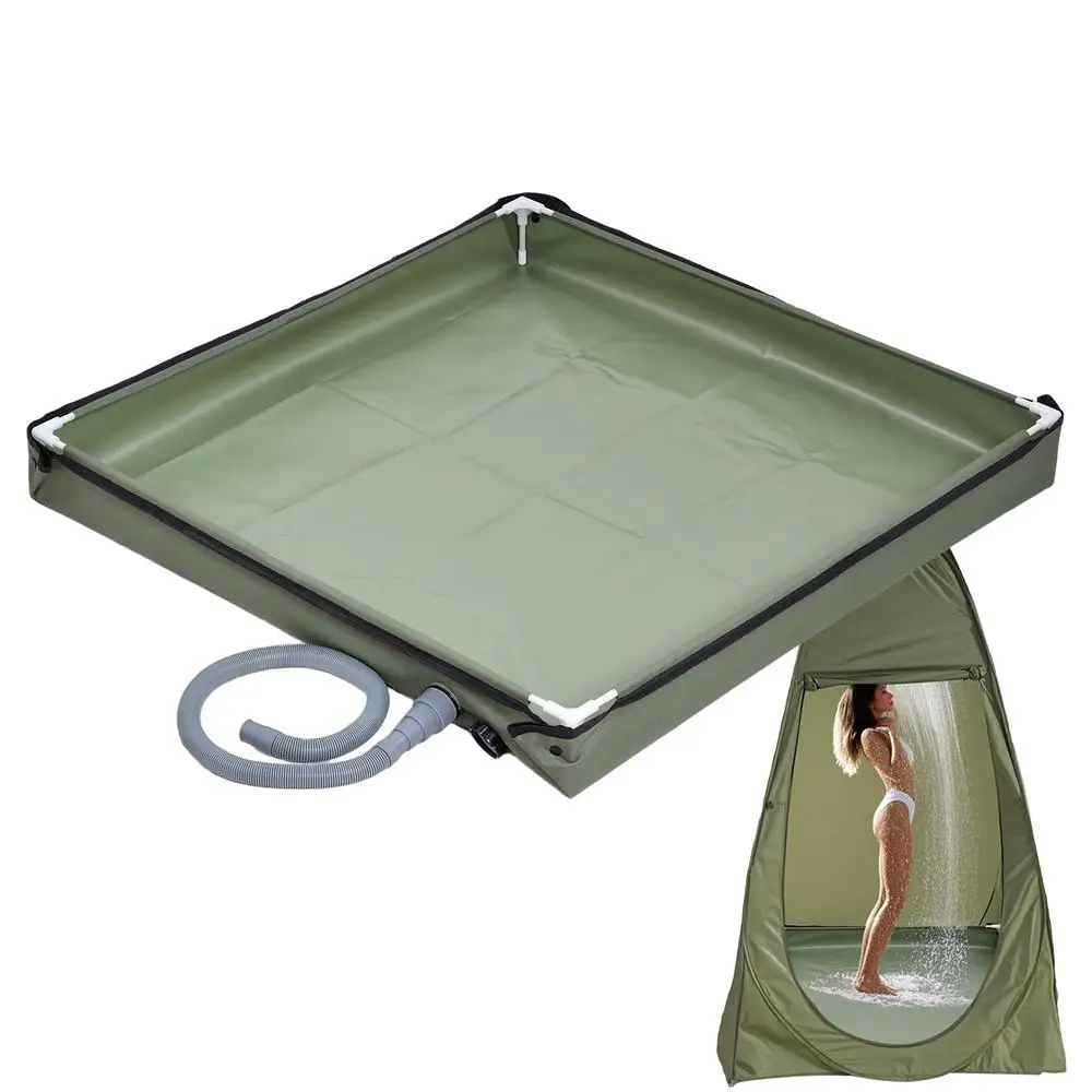 1.Convenient Camping Must-Have: Designed with a drainage hose, this foldable shower base protects feet from dirt, grass, and sand, enhancing comfort for outdoor showers in any camping environment