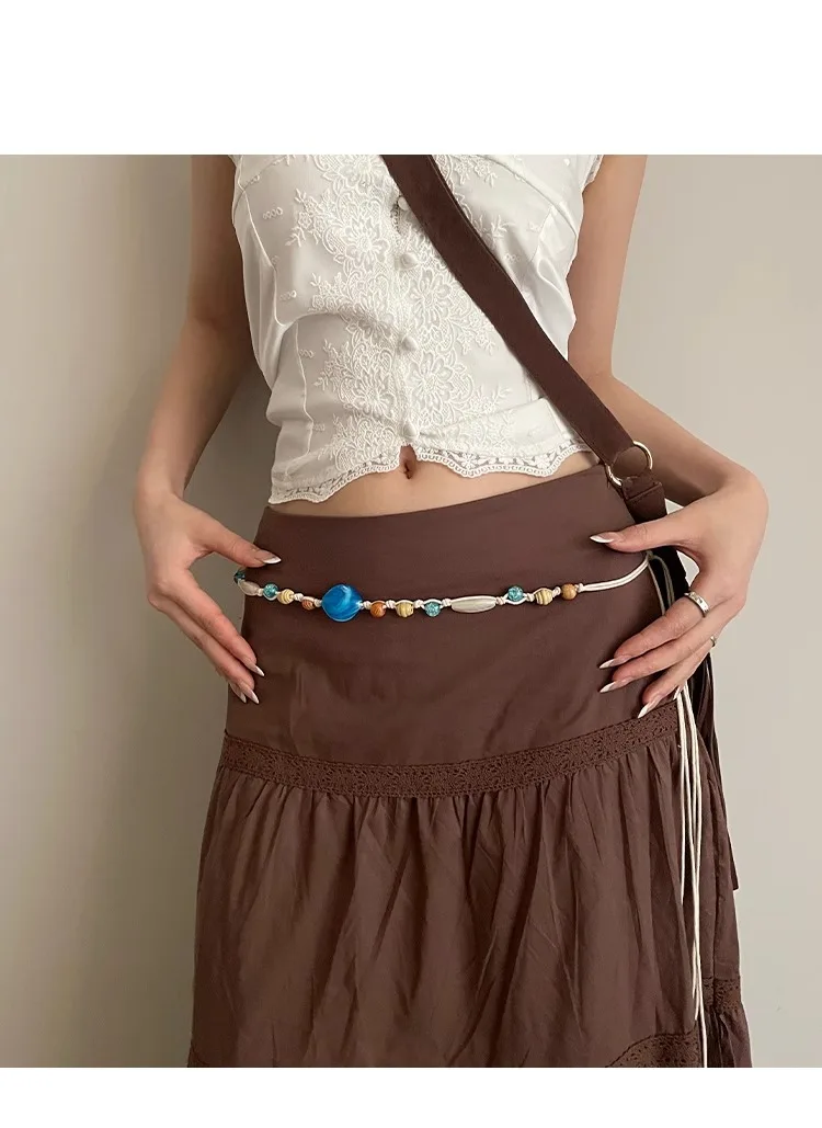 Folk Style Braided Belt Bohemian Beaded Design Feeling Waist Rope Sash With Skirt Dress With All Kinds Of Decoration