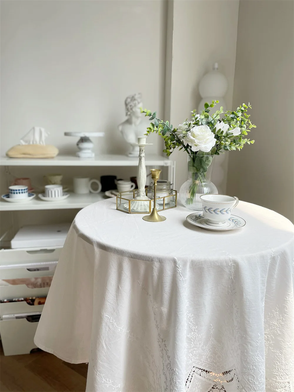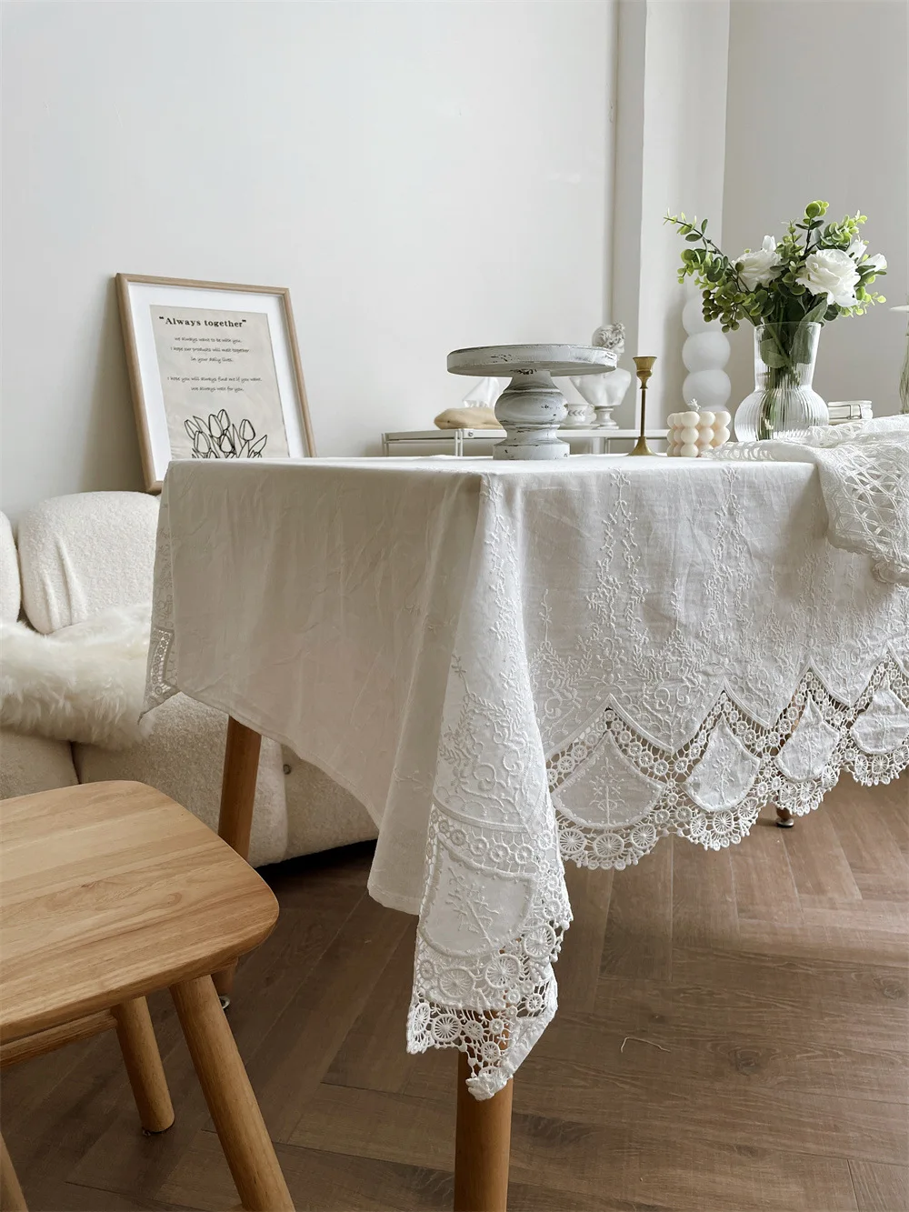 French White Lace Flower Embroidery Cotton Tablecloth for Wedding Party Decoration Table Cloth Luxurious Table Cover