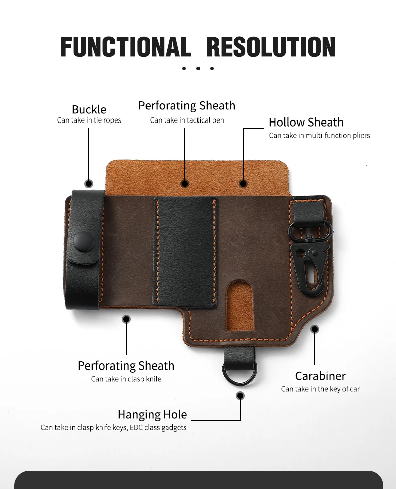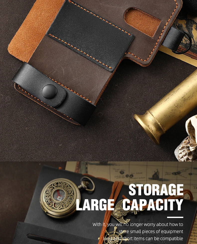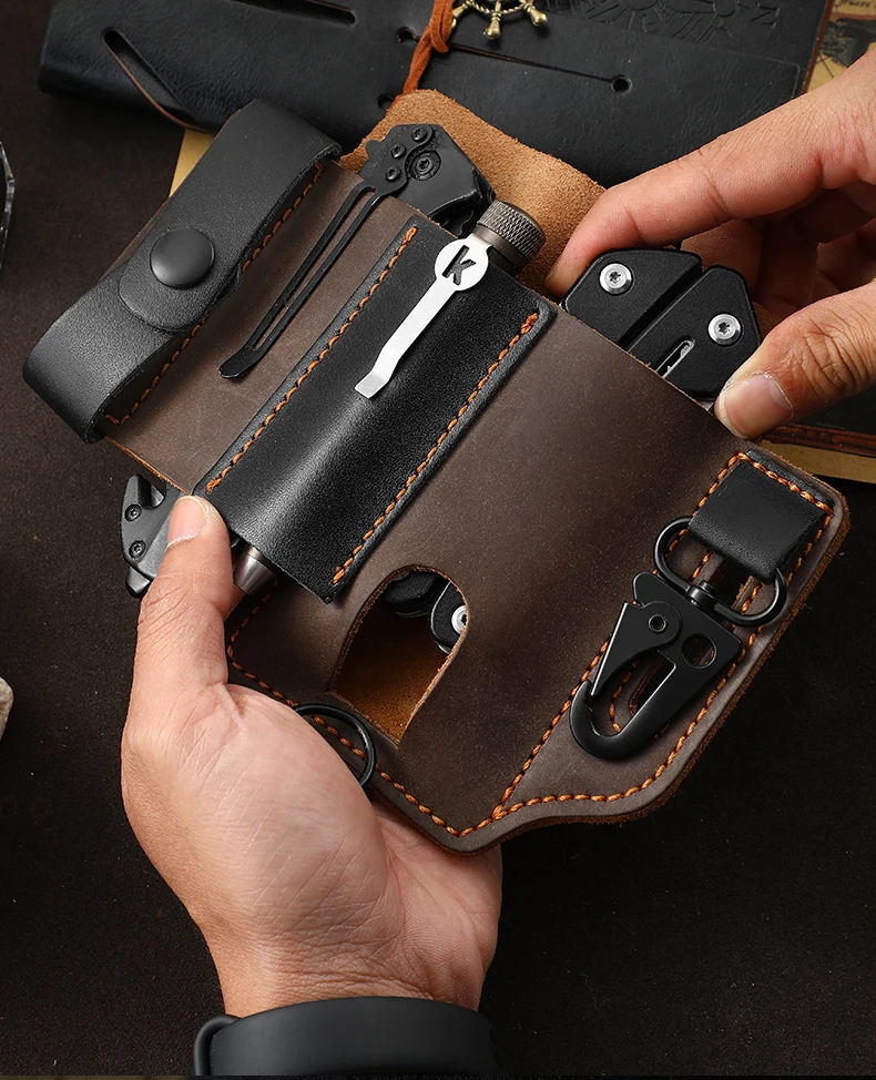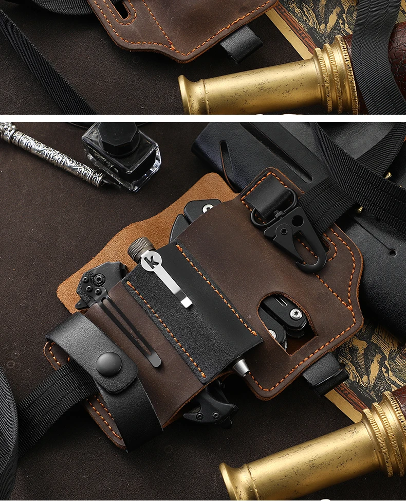Genuine Cowhide Leather With Buckle Outdoor Portable Tactical Multifunction Belt Holster Pocket EDC Multitool Sheath Hunting Bag