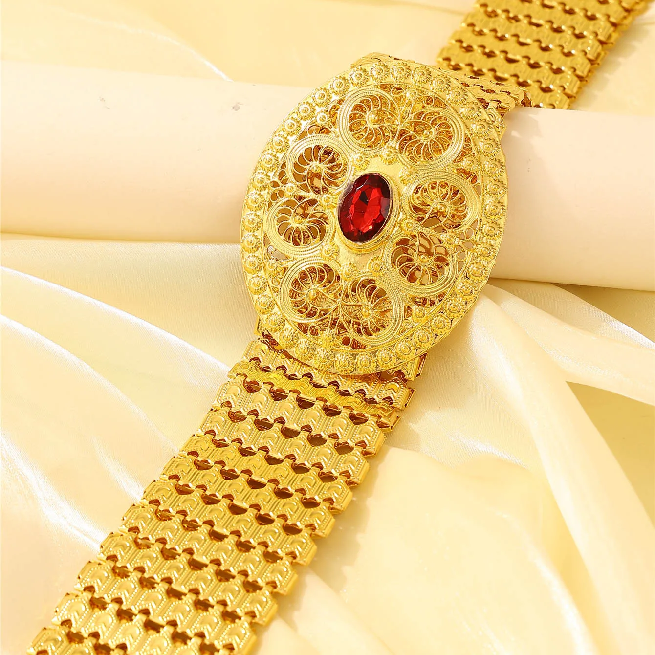 Gilded snak scalebelt golden oval leather belt inlaid with large red gemstones designed bridal banquet dances popular style belt