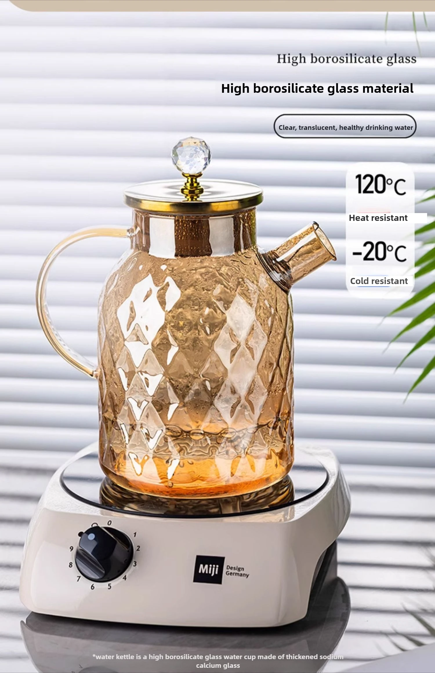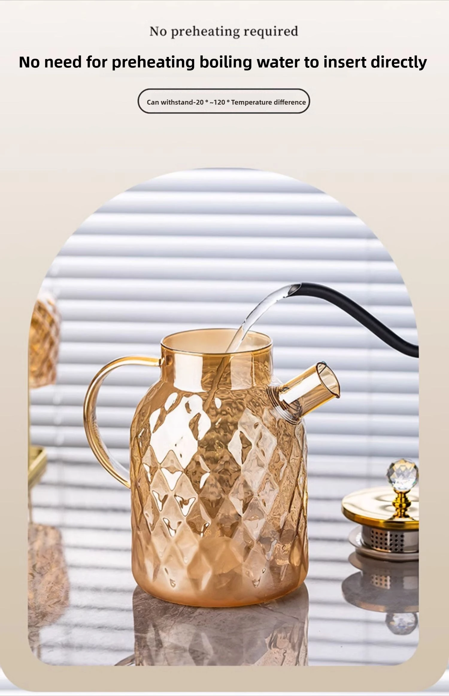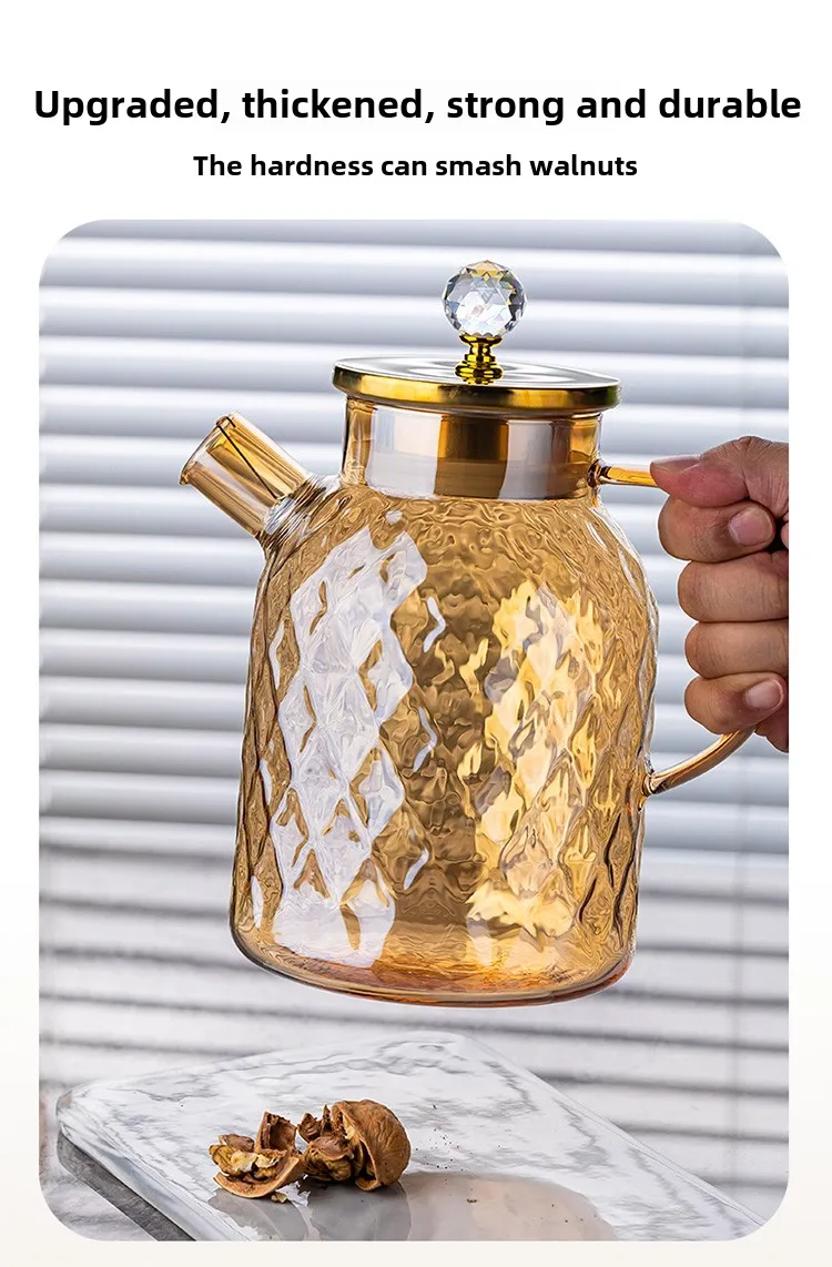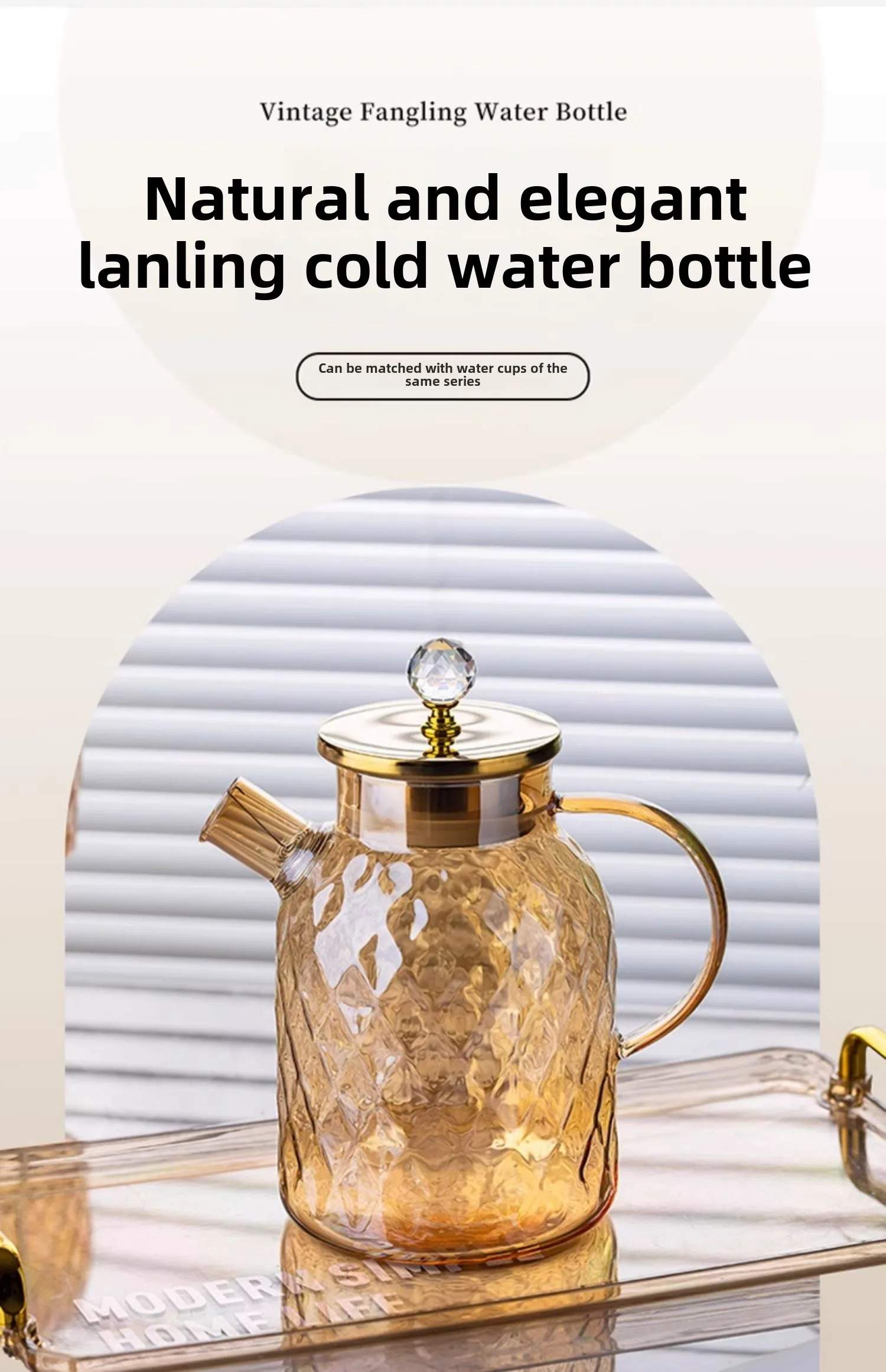 High Borosilicate Glass Water Pitcher - Amber Cold Beverage Jug, Large Capacity, Heat-Resistant for Tea & Home Use
