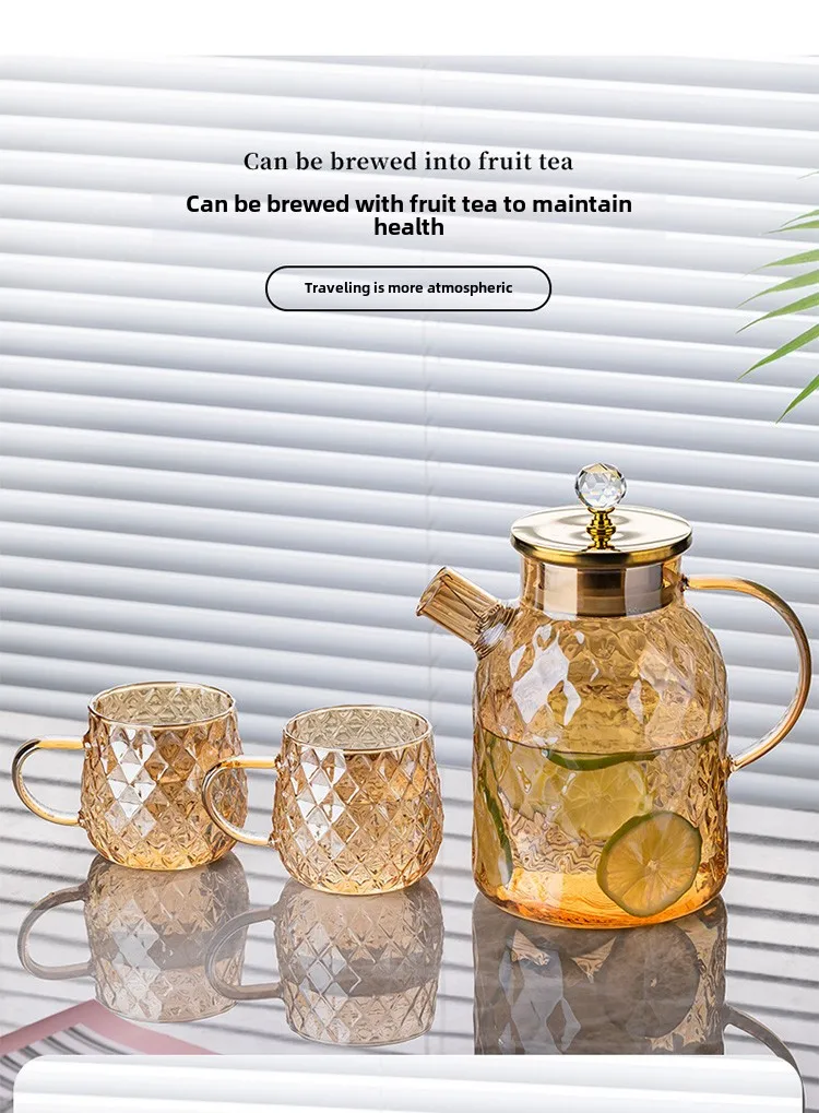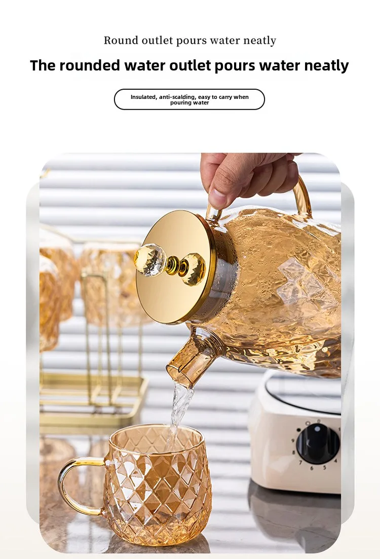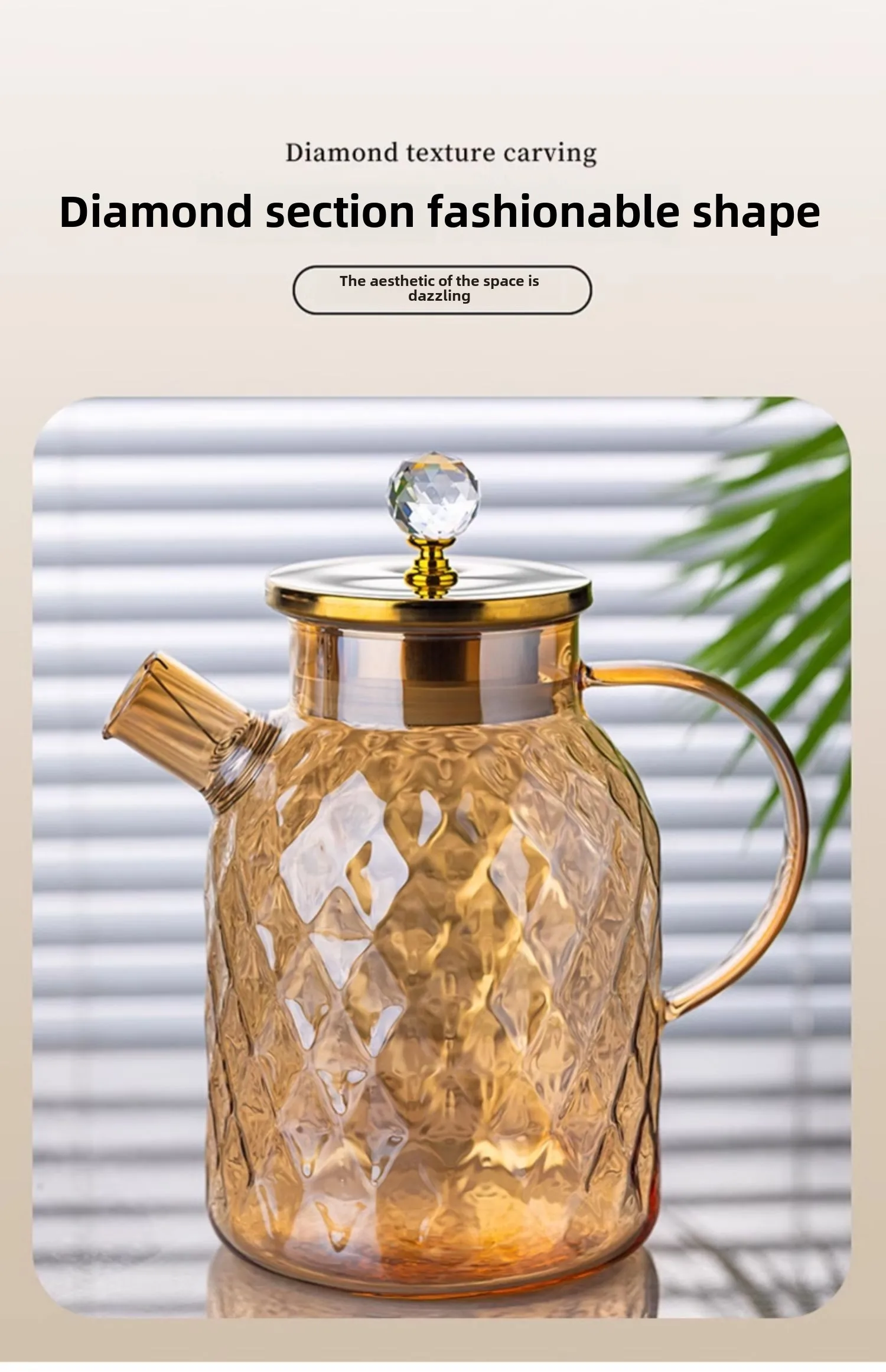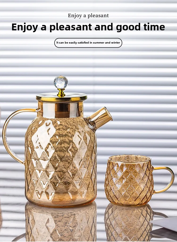 High Borosilicate Glass Water Pitcher - Amber Cold Beverage Jug, Large Capacity, Heat-Resistant for Tea & Home Use