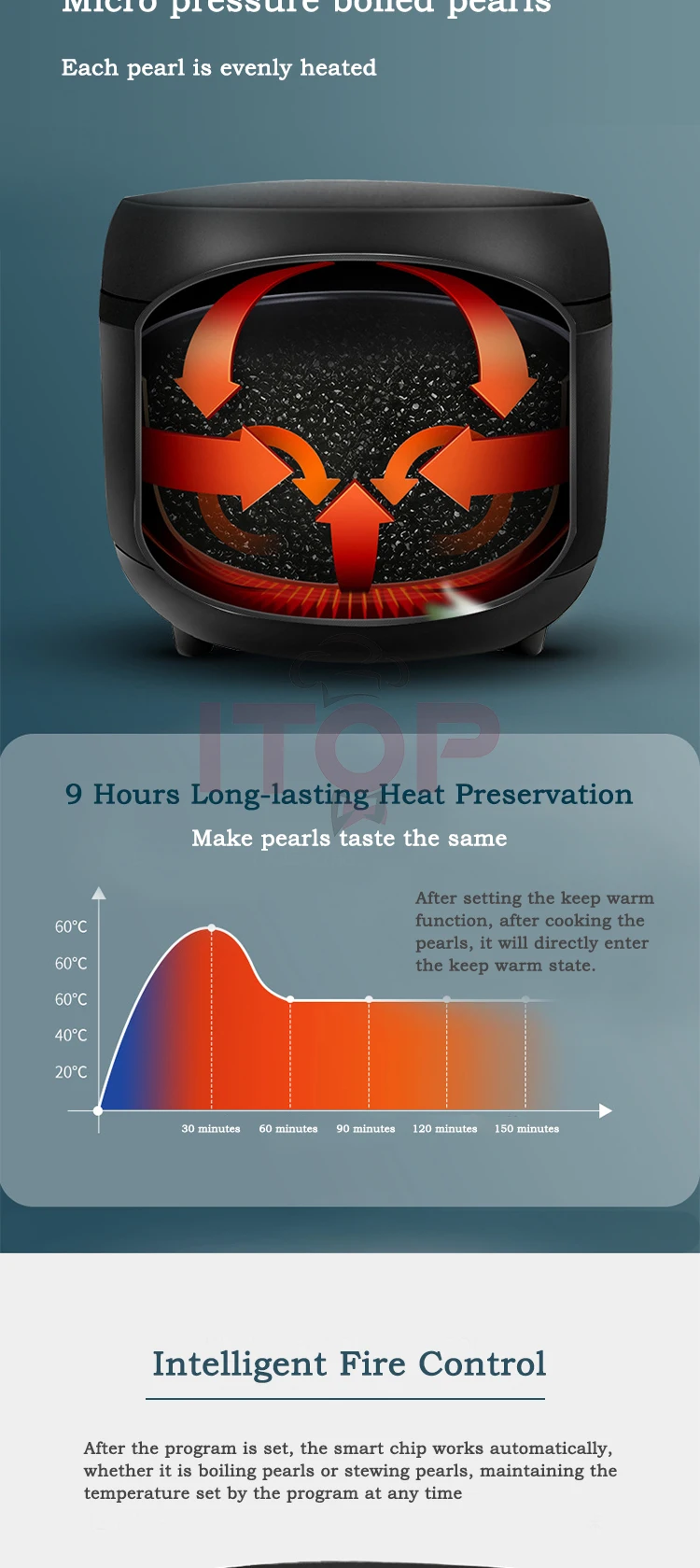 ITOP Boba Pot Electric One Pot Multi-Purpose Automatic Pearl Non-Stick Pot Intelligent Temperature Control Bubble Tapioca Cooker