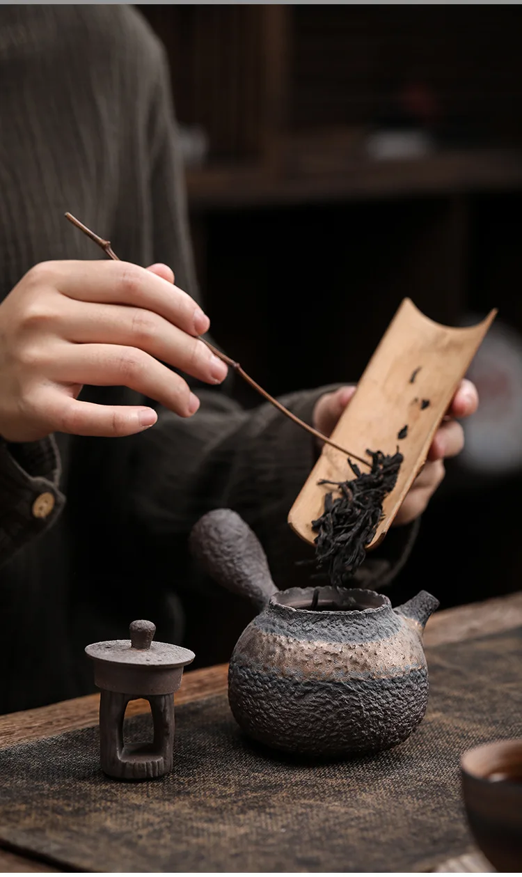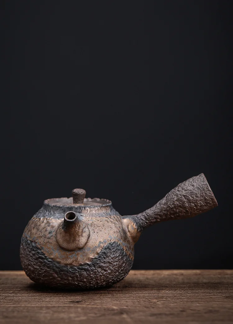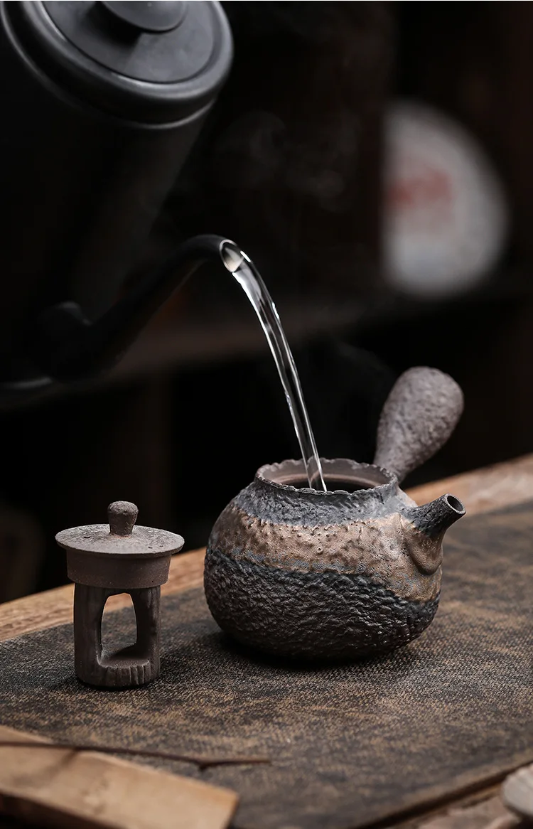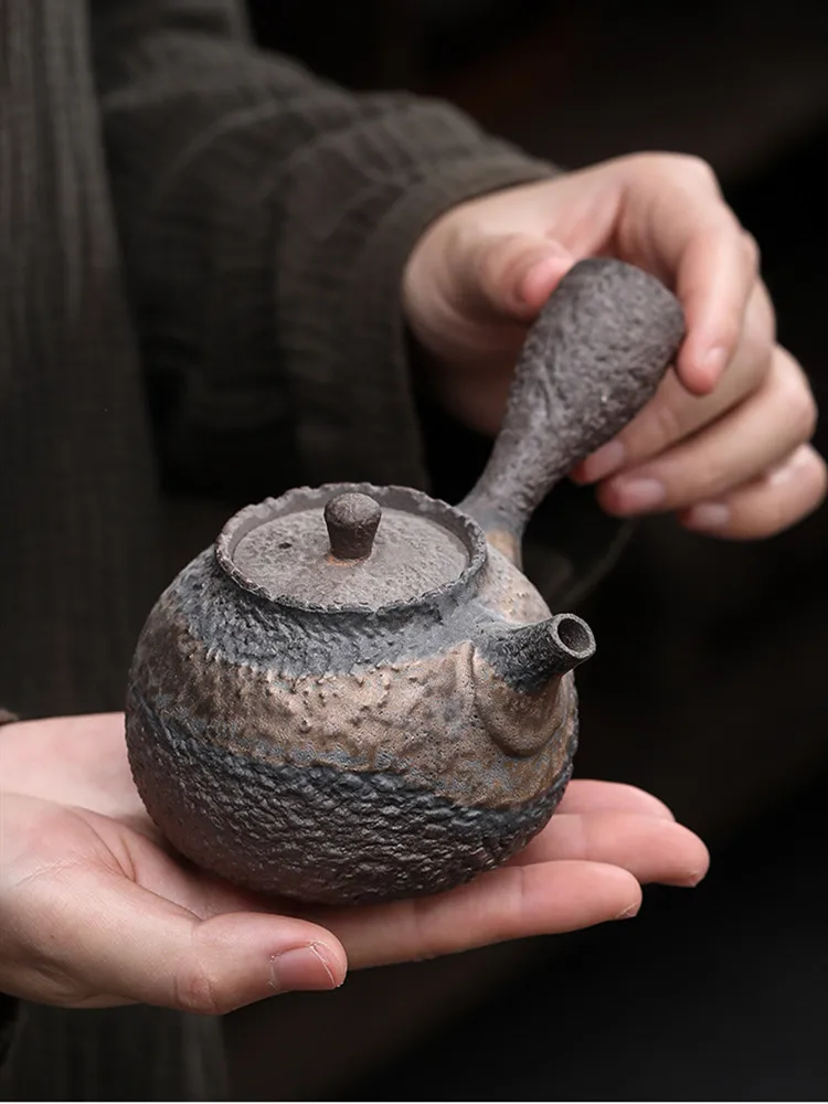 Japanese Rough Pottery Stone Pattern Pot Side Handle Handmade Teapot Retro Ceramic Tea Set Pu'er Tea Maker Portable Tea Pot