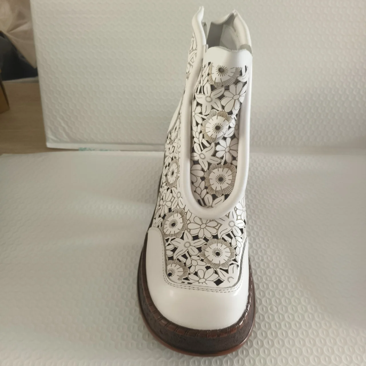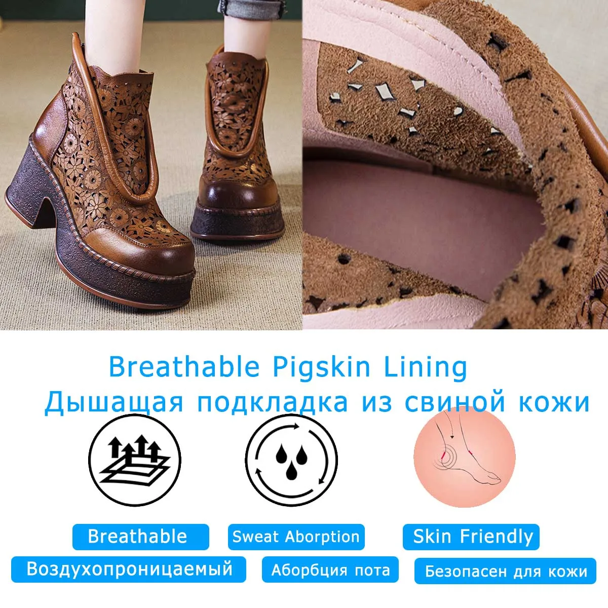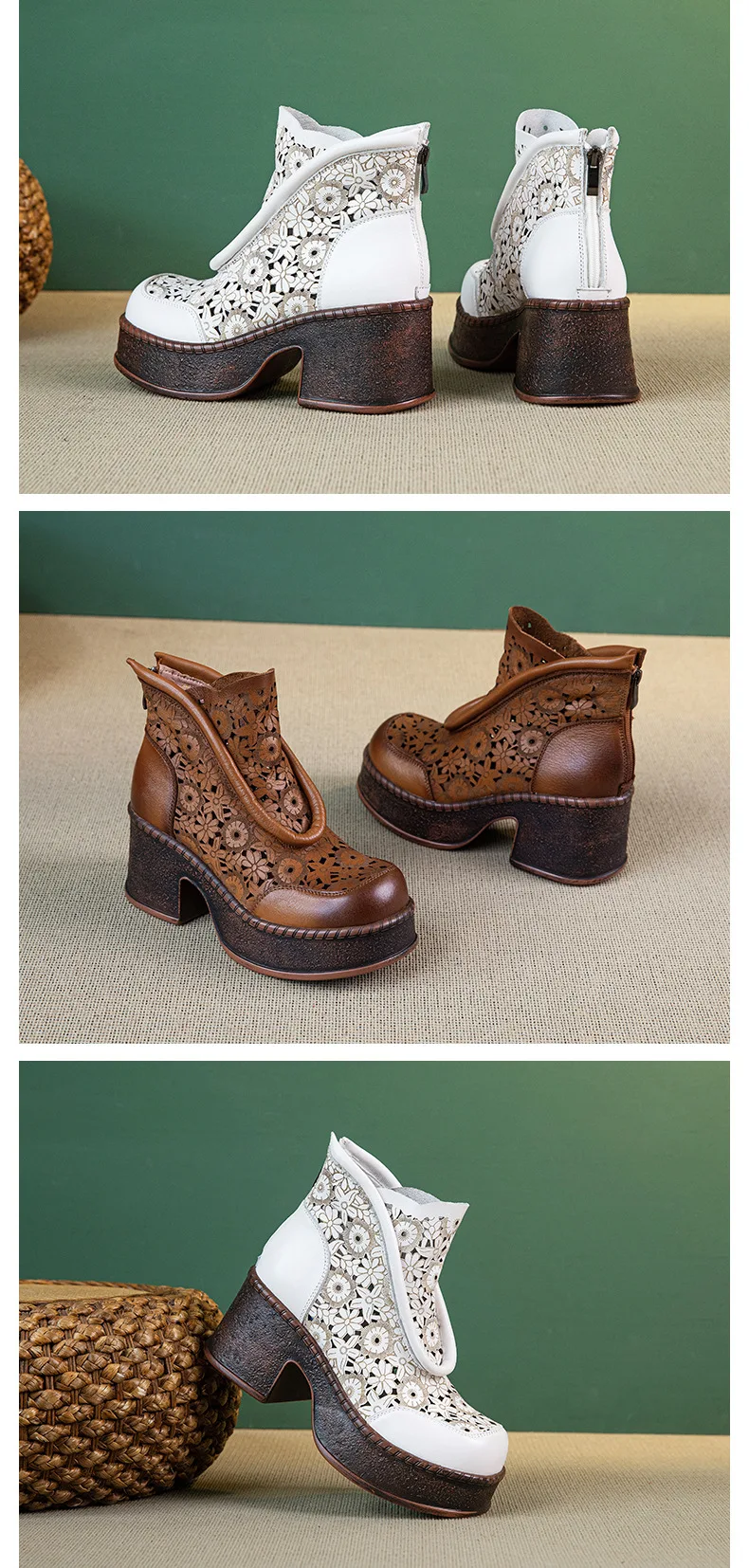 Koznoy 7.5cm Genuine Leather Sandals Ankle Booties Women Hollow Chimney Moccasins Fashion Summer Motorcycle Natural Boots Shoes