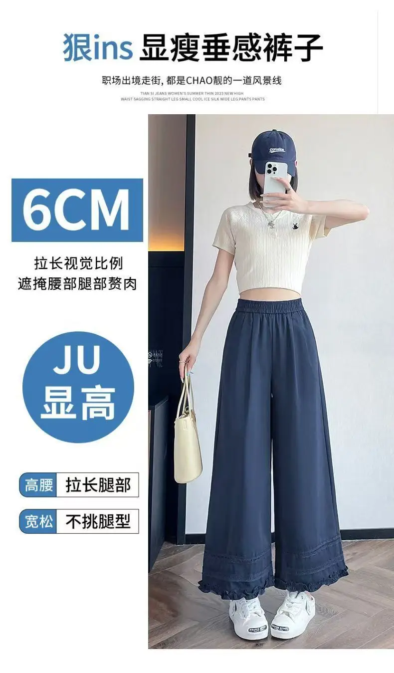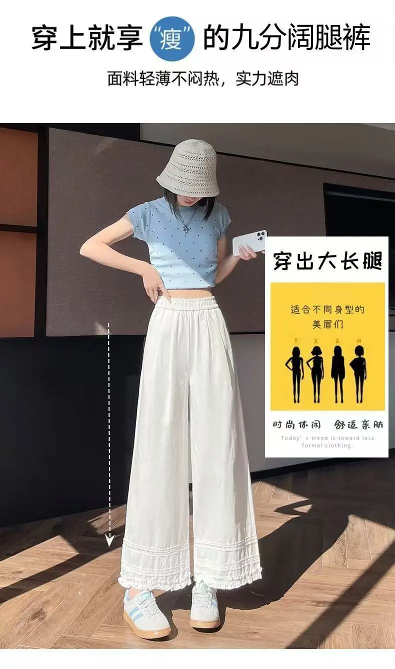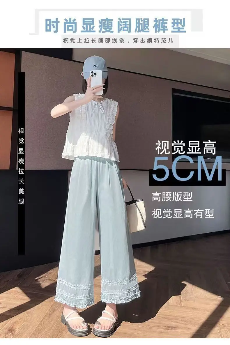 Lace Lace Spliced high-waist Wide-leg New Loose Thin Sun Protection Casual Straight-leg Pants