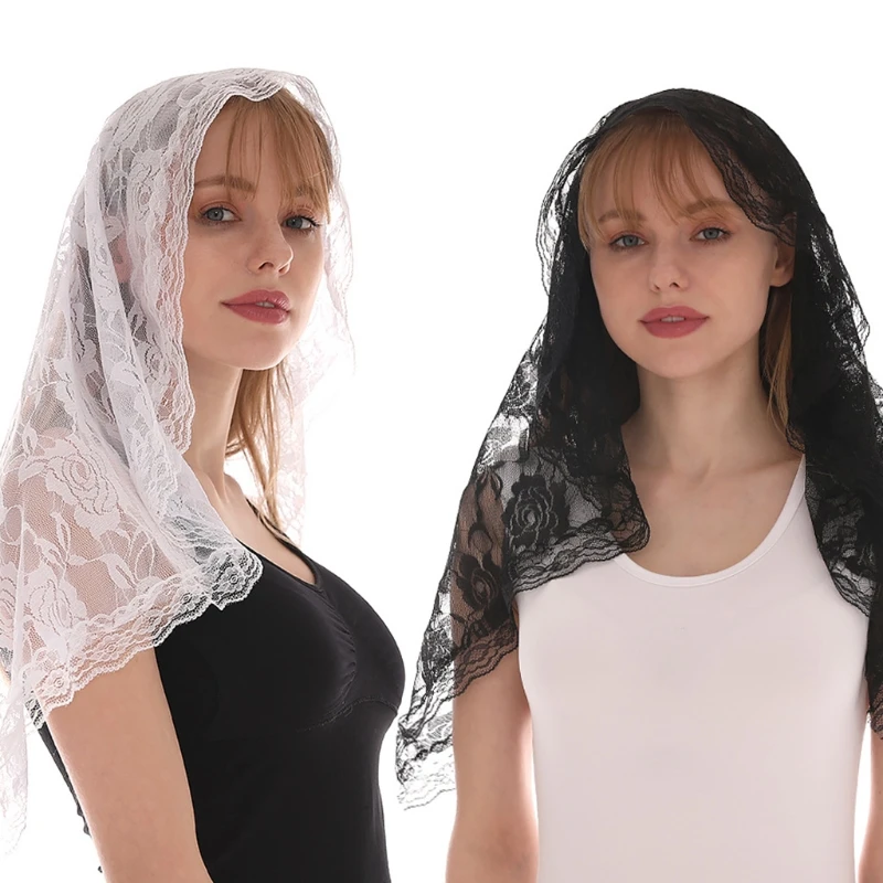 Lace Shawl Mantilla Catholic Veil Lightweight Tassel Scarf Floral Embroidery