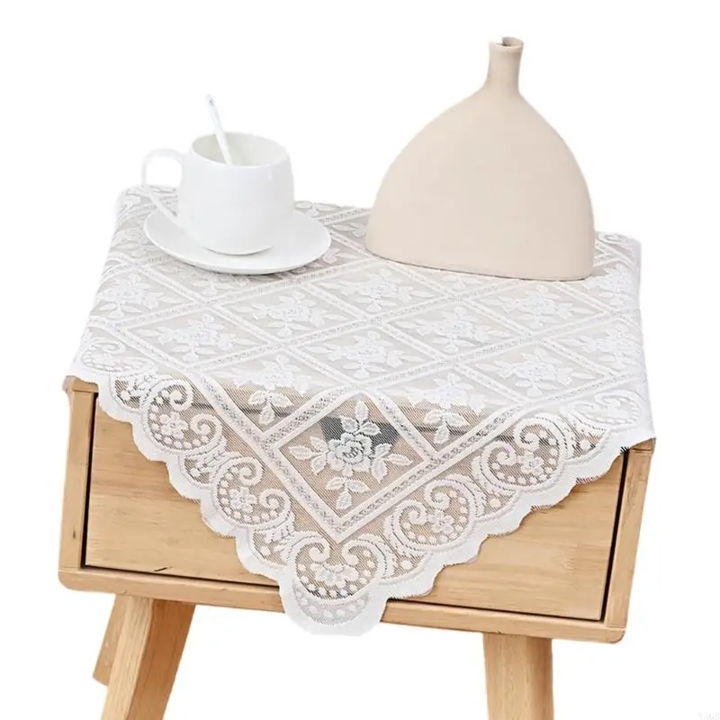 Lace Table Cover Table Runner Tablecloth For Nightstands Dressers Fit Furniture Protectors Sheer White Design Y5GB