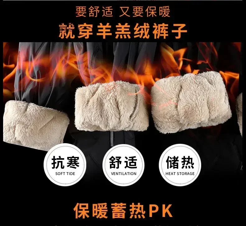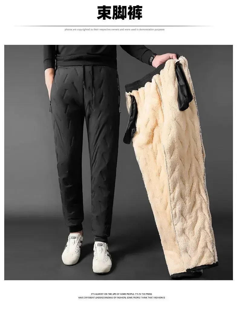 Lamb Feather Pants Men's Lined Fleece Pants Men's Cashmere Sports Pants Men's Autumn Winter Casual Jogging Pants Winter Warm