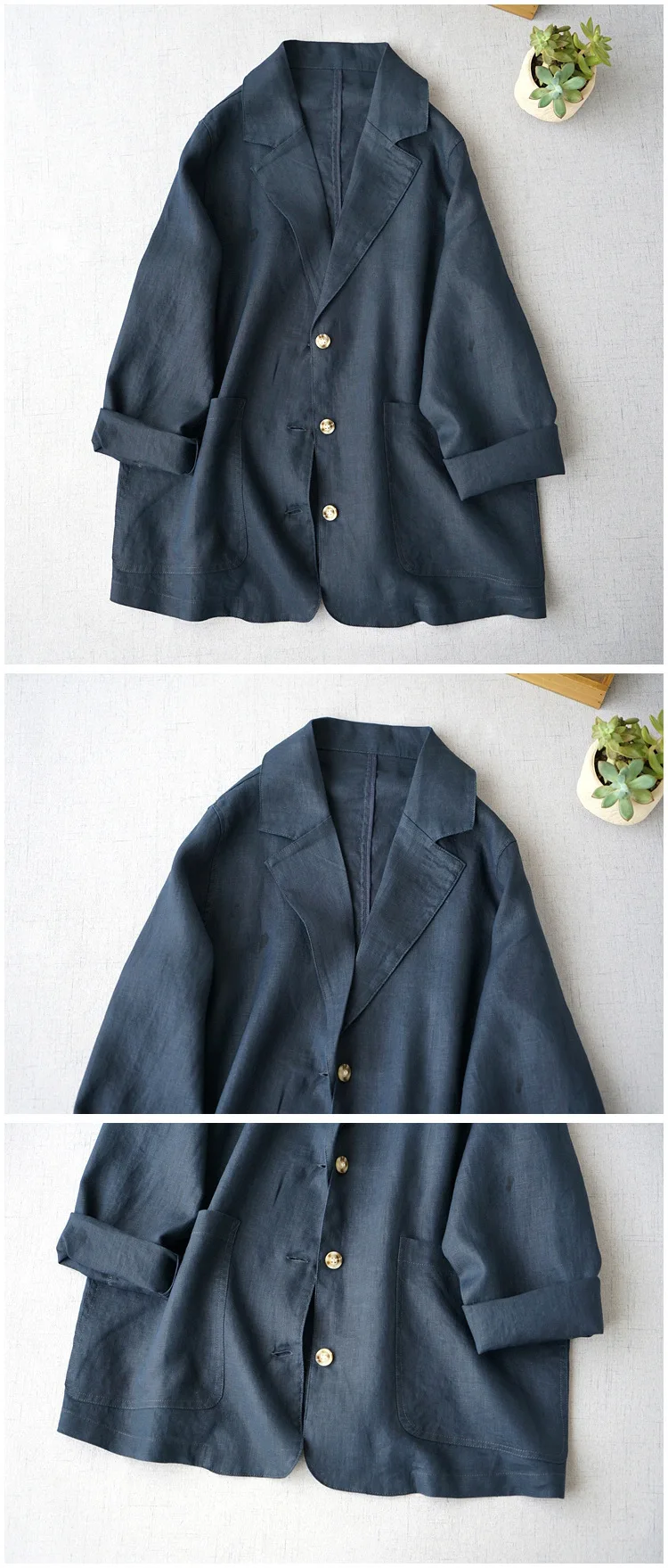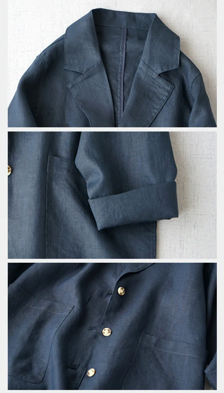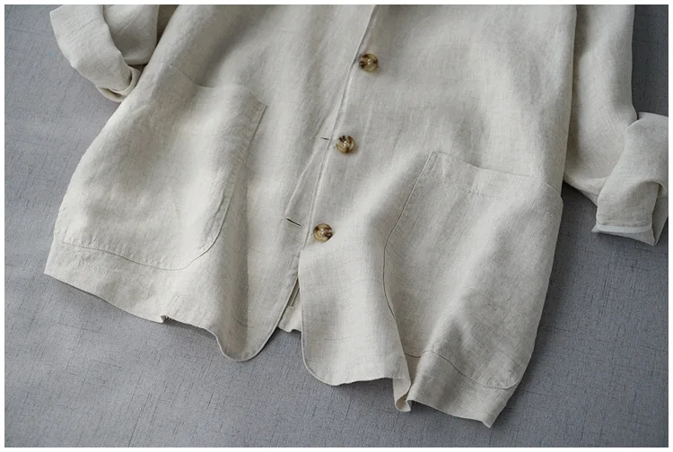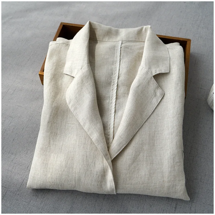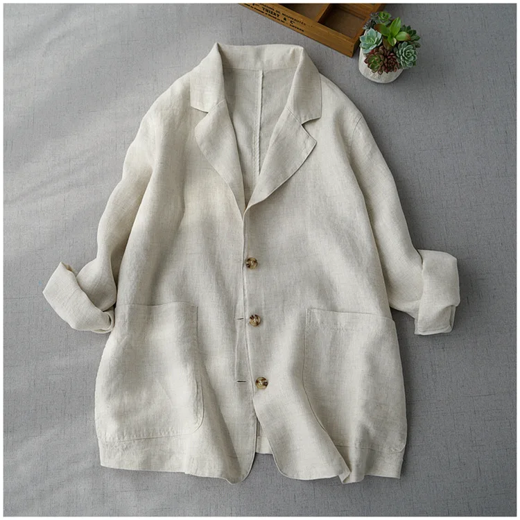 Linen Thin Jacket Women's Spring Loose Fitting Womens Simple Casual Top Western Clothes Outer Garment Chaquetas Mujer Verano