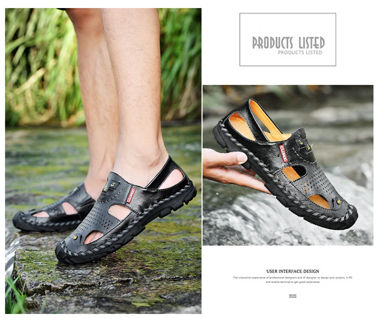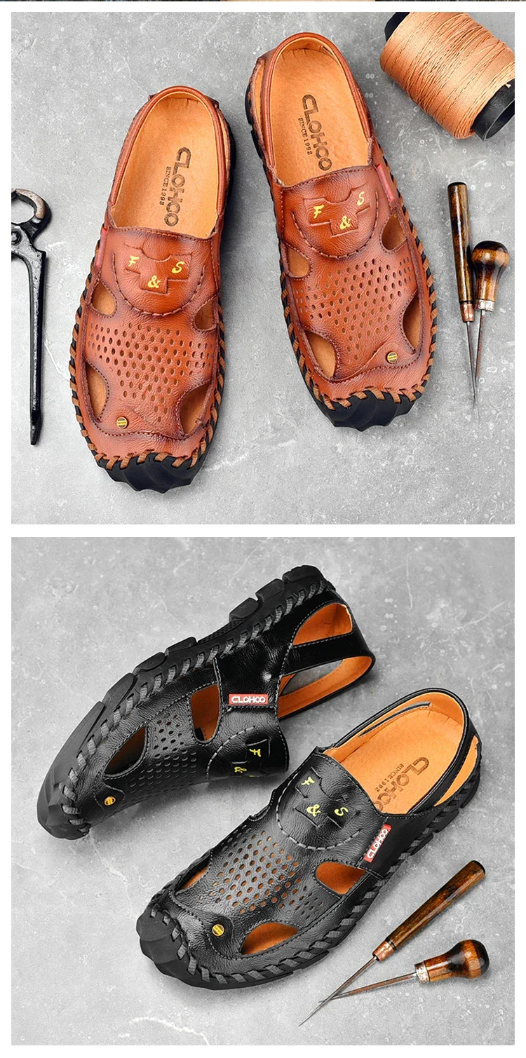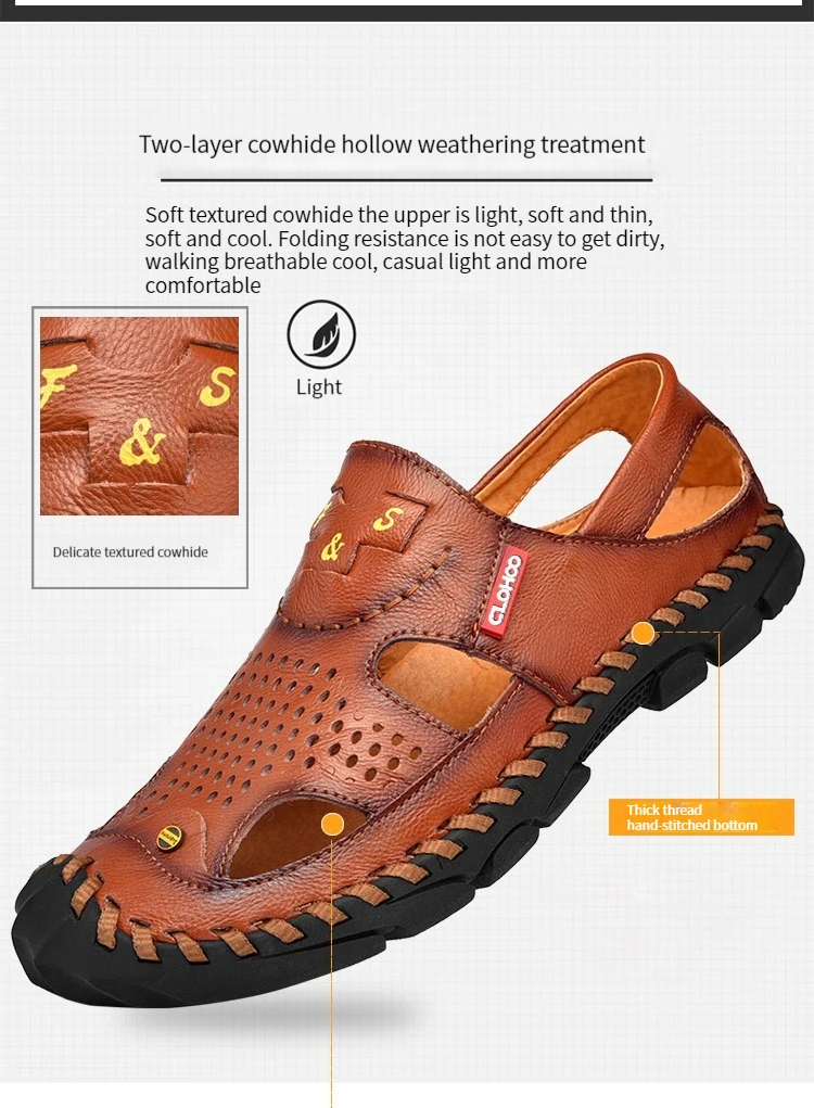 Men Genuine Leather Shoes Men's Sandals Durable Handmade Stitching Close Toe Non Slip Shoes For Indoor Outdoor Beach Casual