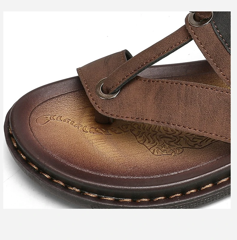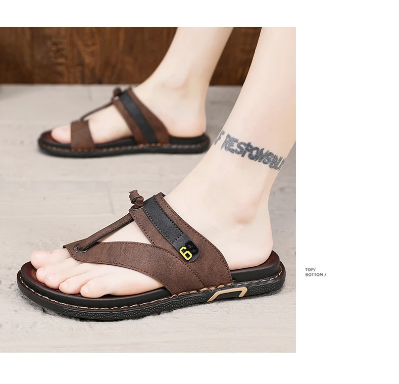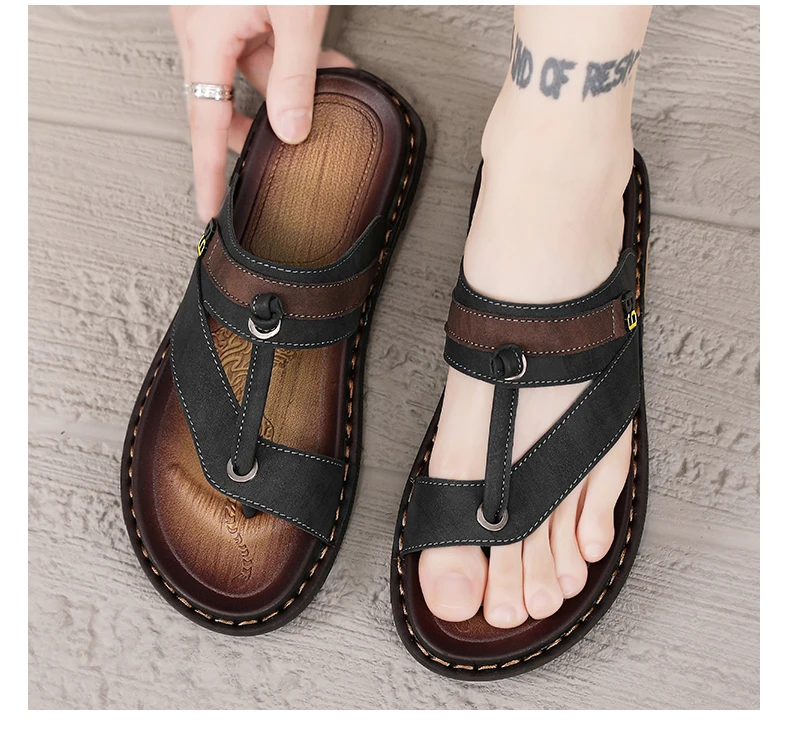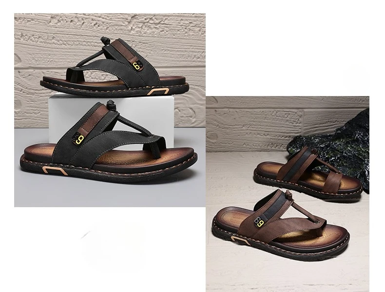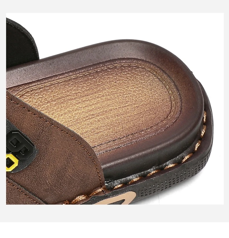Men's Leather Slides Comfortable House Slippers Breathable Rubber Sole Indoor Outdoor Summer Sandals