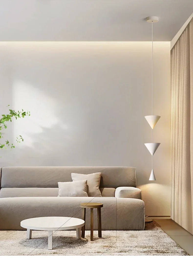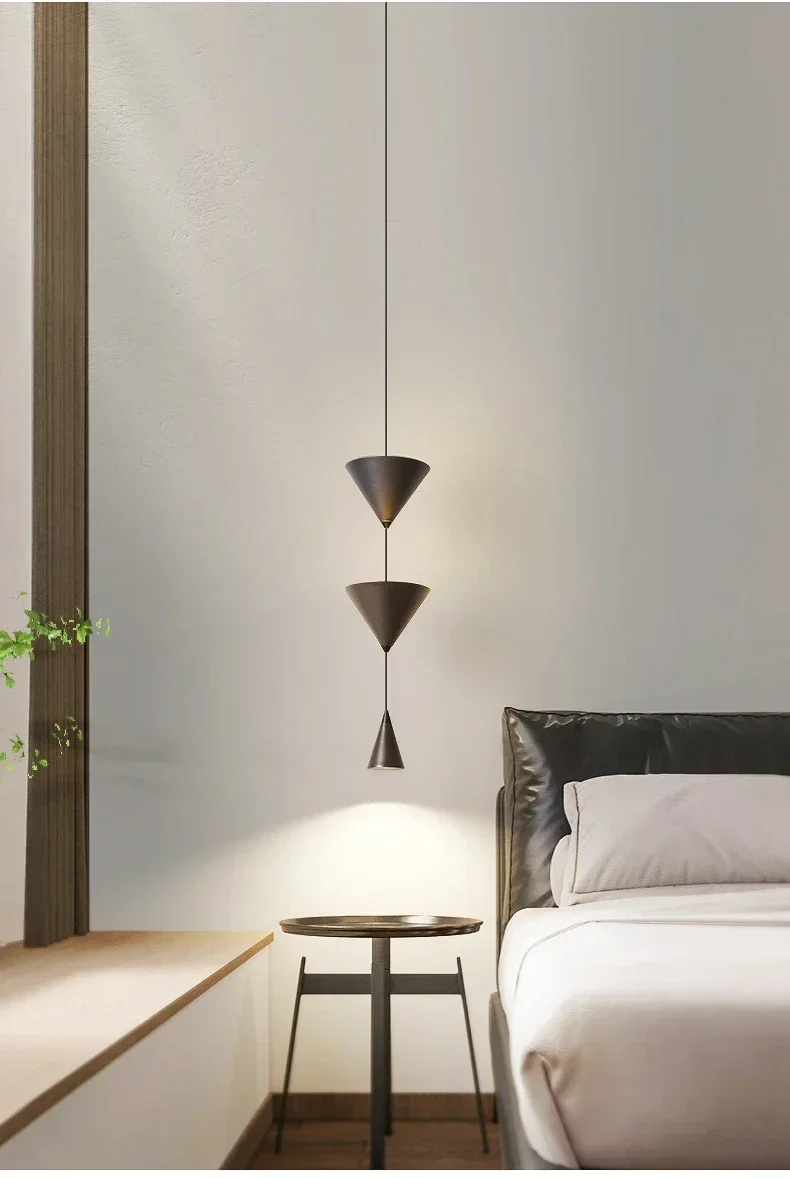 Minimalist Cone Led Pendant Lights for Bedroom Bedside Hotel Hanging Lamp Modern Ceiling Chandeliers Black White Droplight