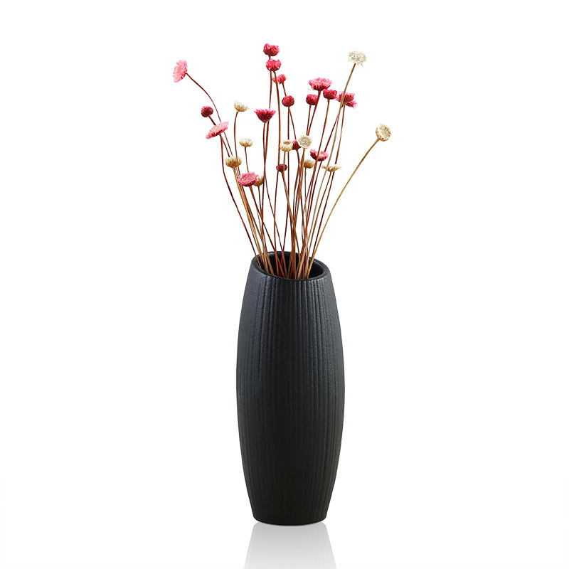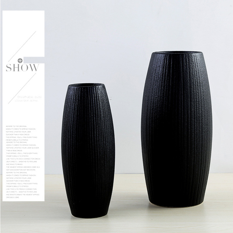 Modern Creative Classic Black Ceramic Vase Retro Vase Container Simple European Handmade Crafts Home Decoration LBS