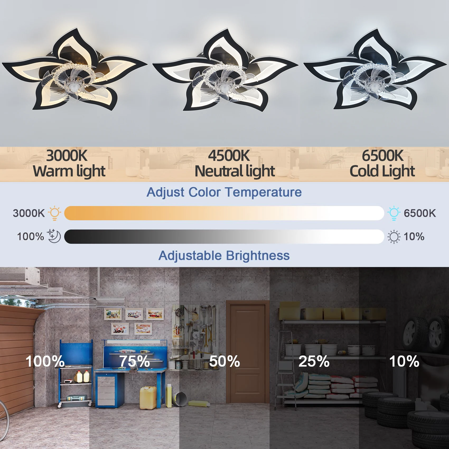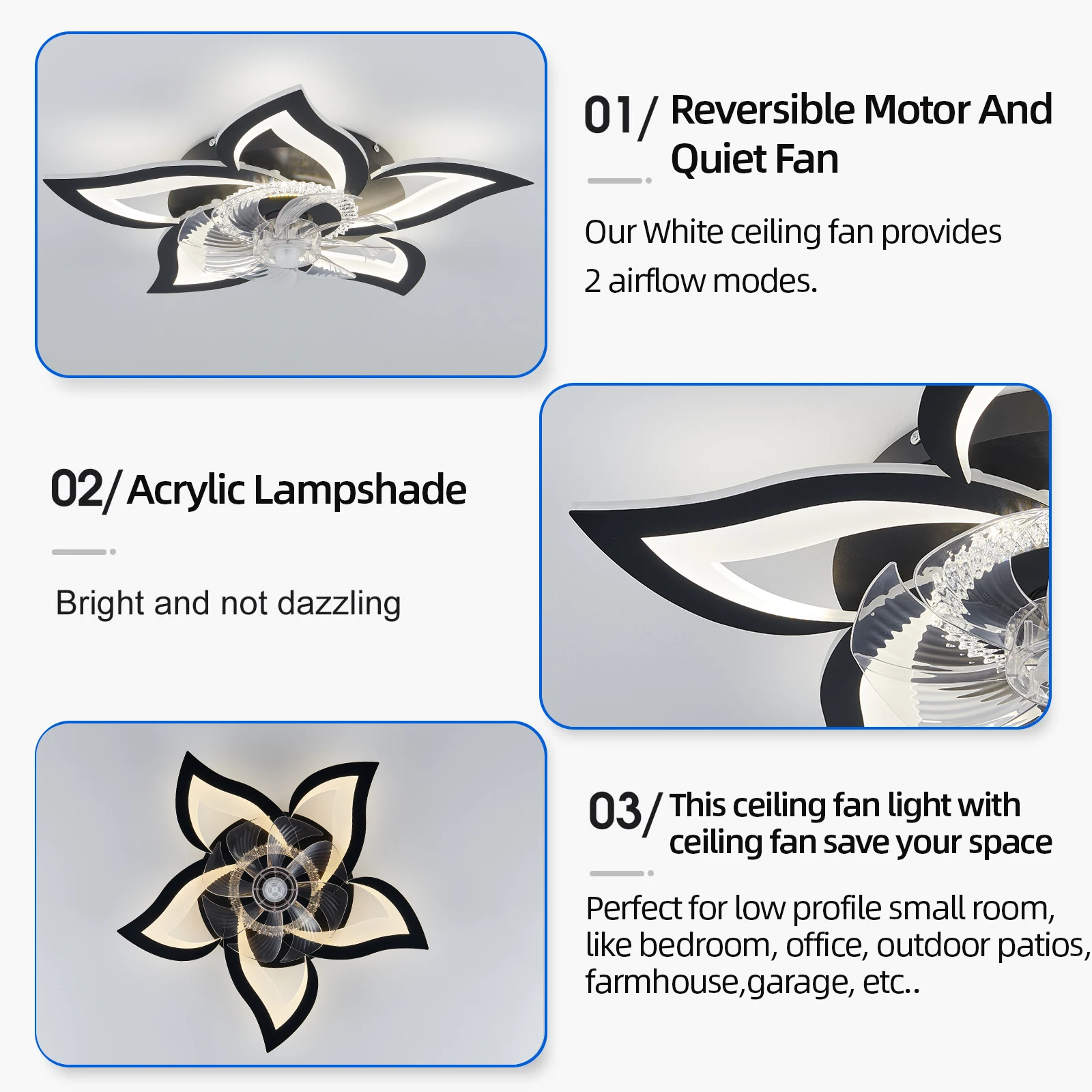Modern ceiling fan and ceiling lamp two-in-one design, more fashionable in appearance and more practical, with three adjustable color temperatures and wind power modes, and a noiseless ceiling fan.