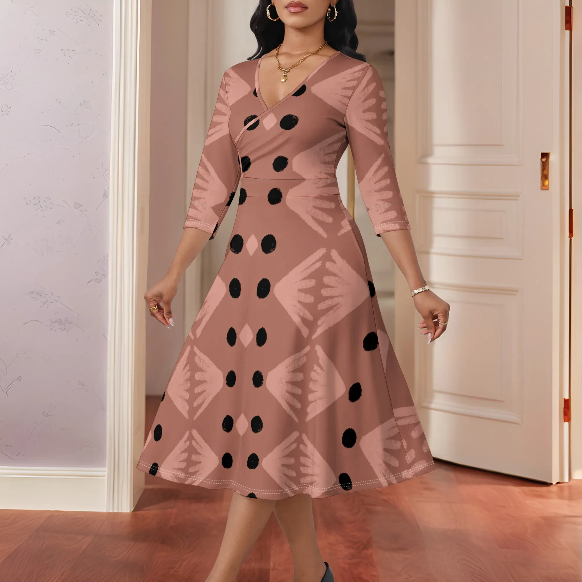Mudcloth Inspired Print Wrap Dress XS-3XL Modern Afro A-Line Style with V-Neck for Juneteenth, Gallery Visit or Boho Fall Look