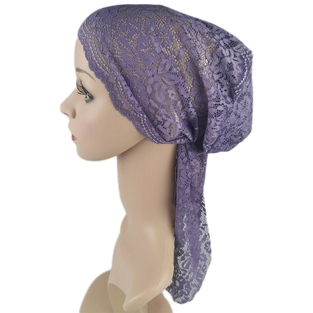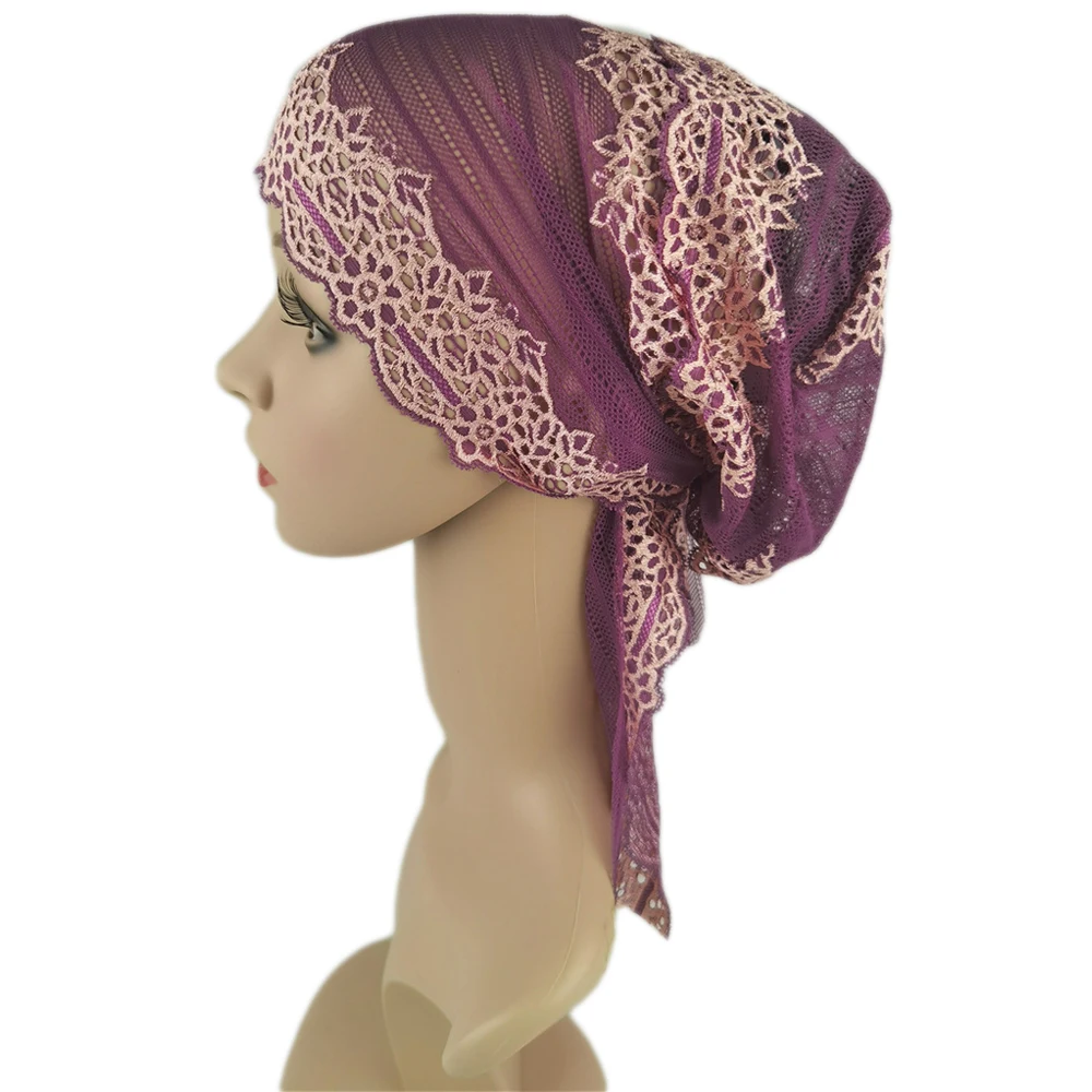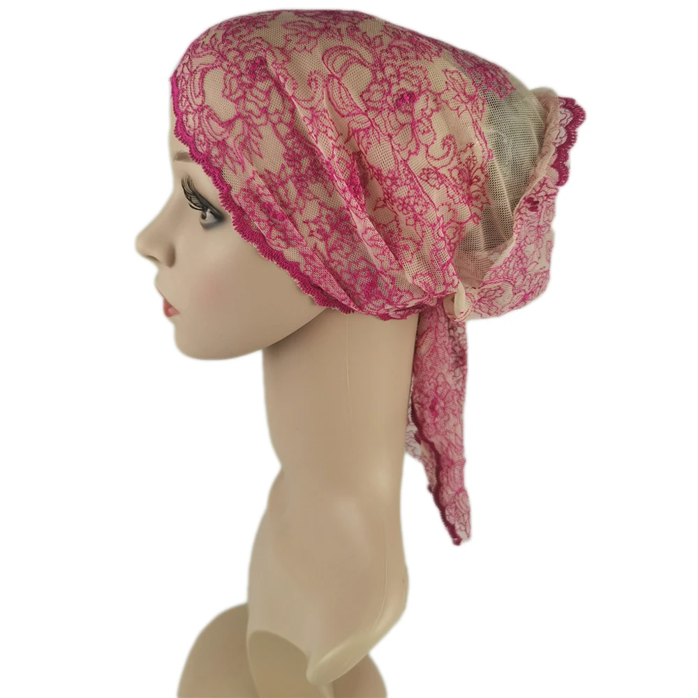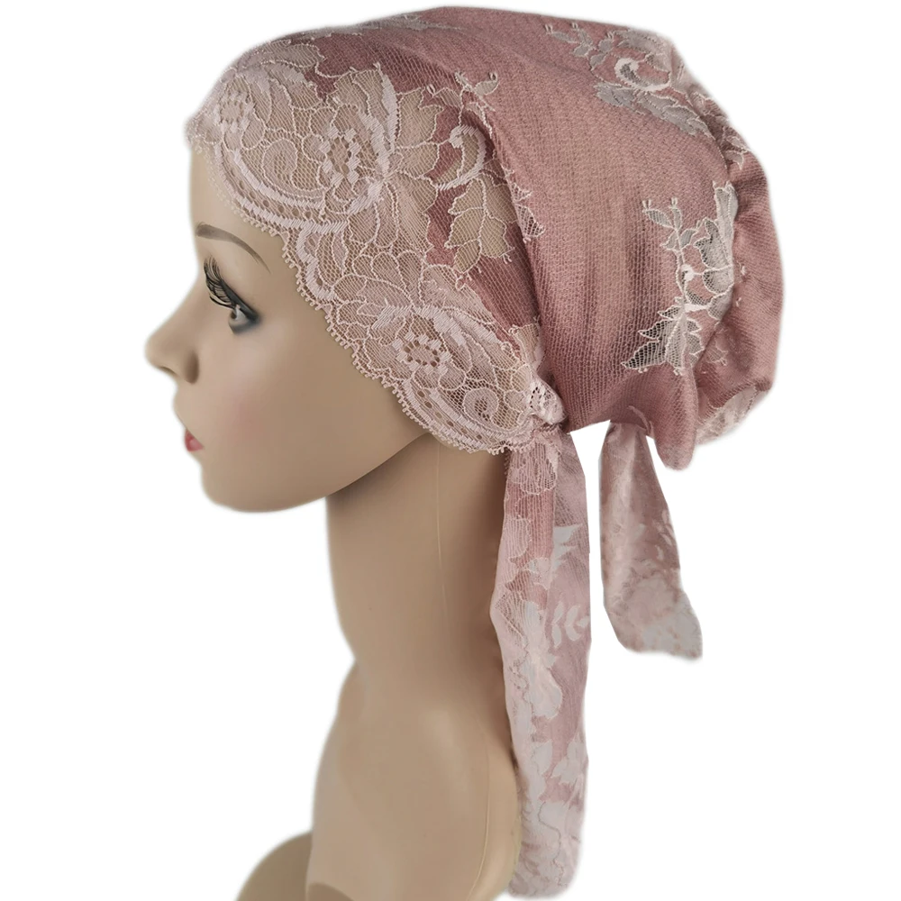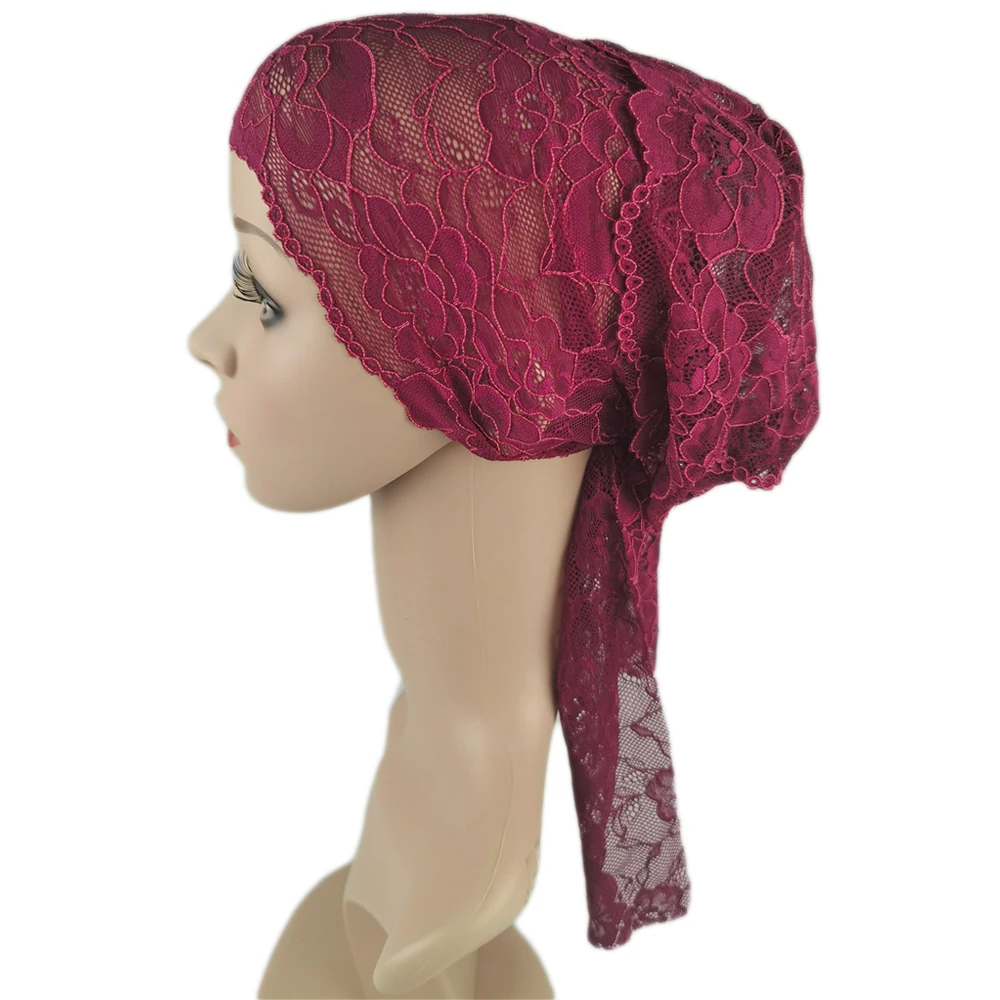Muslim Women Head Scarf Lace Flower Underscarf Elastic Hijab Hair Cover Headwrap Chemo Cap Islam Headband Bonnet Turbante Mujer