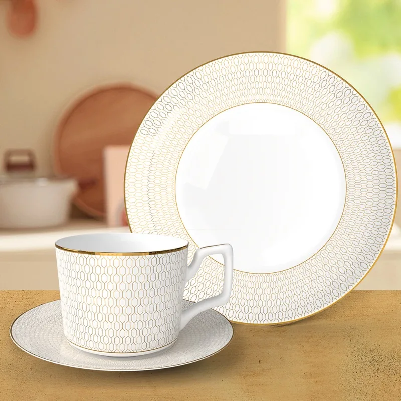 New Bone China Dinner Plates Luxury Gilded Lace Ceramic Tableware Set Feast Porcelain Western Plate Cake Dish Home Decor