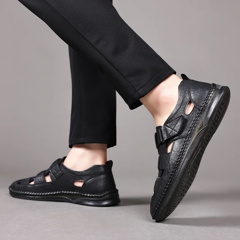 New In Sandals for Men Outdoor Beach Flats Breathable Casual Normal Leather Casual Anti Slip Designer Replica Summer Sandals