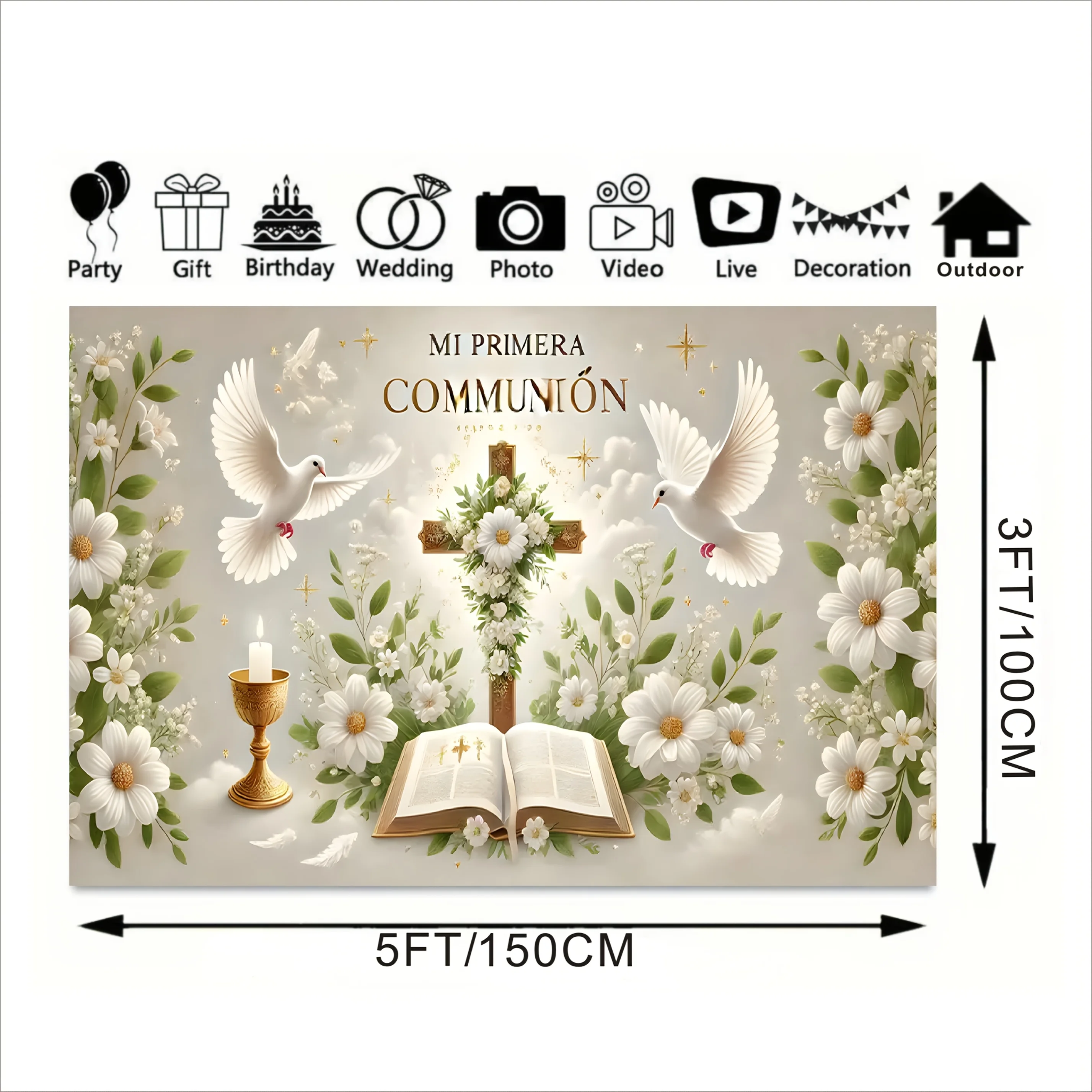 One Mi Primera Comunion elegant baptism and the First Communion Party decorative banner, perfect for decoration