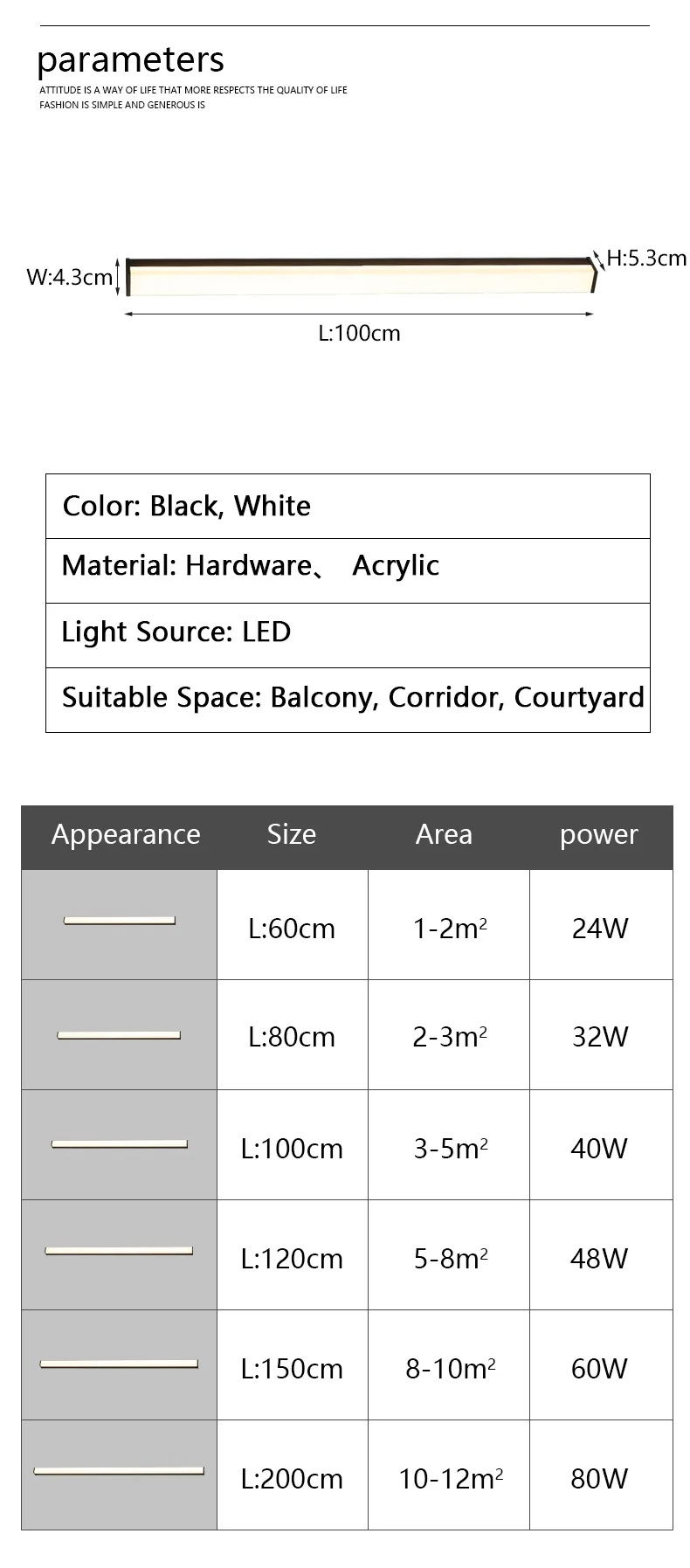 Outdoor waterproof wall lamp long strip modern simple LED courtyard garden wall lamp balcony lamp minimalist exterior wall lamp