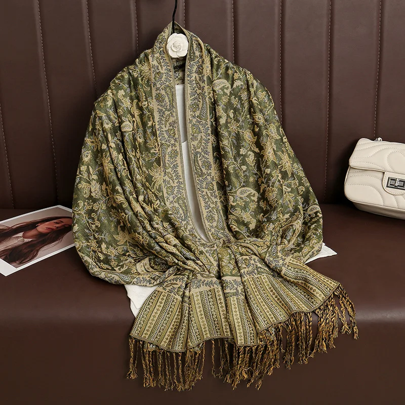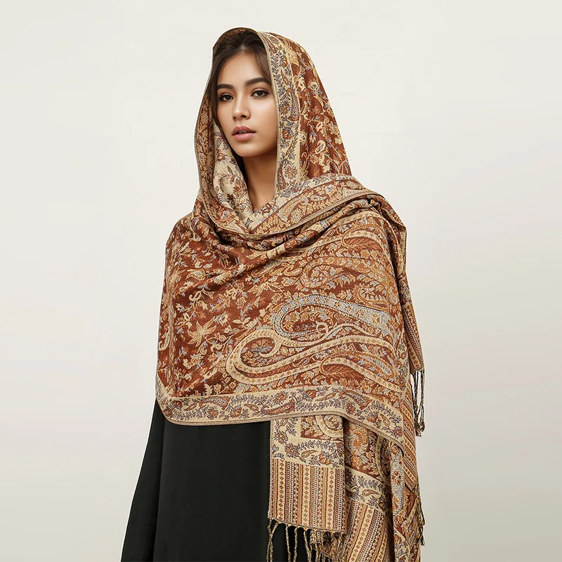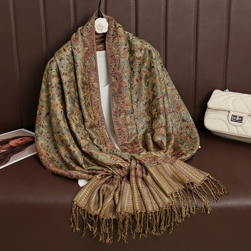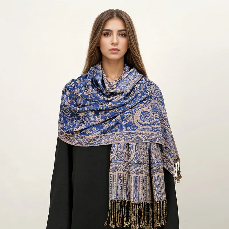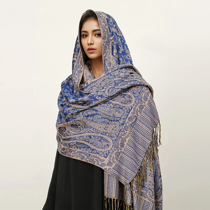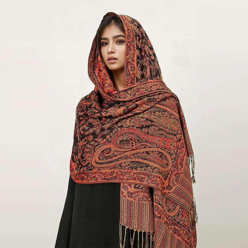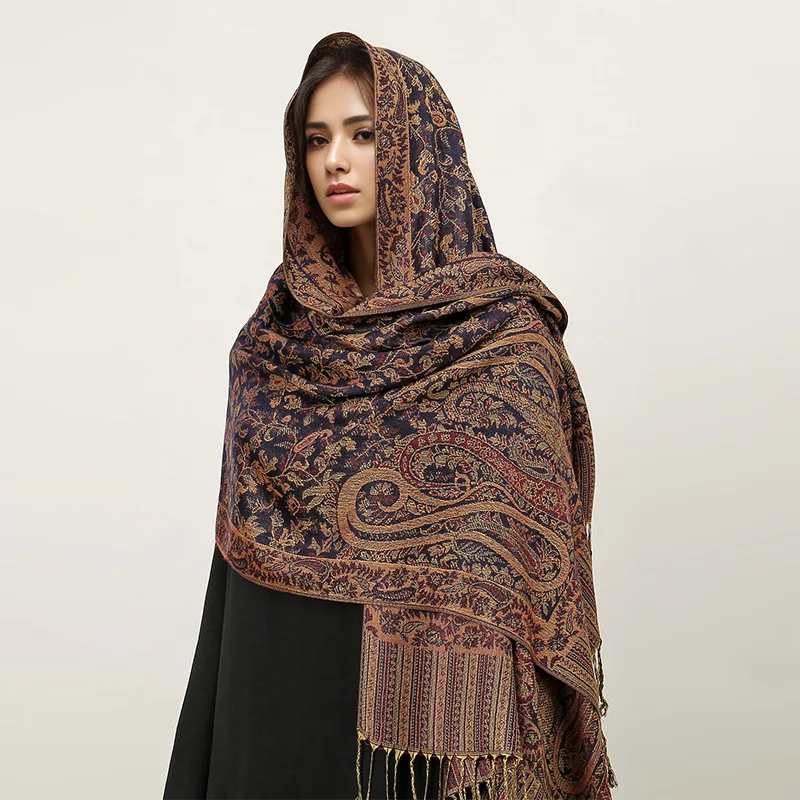 Paisley Pashmina Shawl Scarf Women Jacquard Cashew Printed Scarves Borders Female Tassel Travel Blanket Wraps Ethnic Shawls