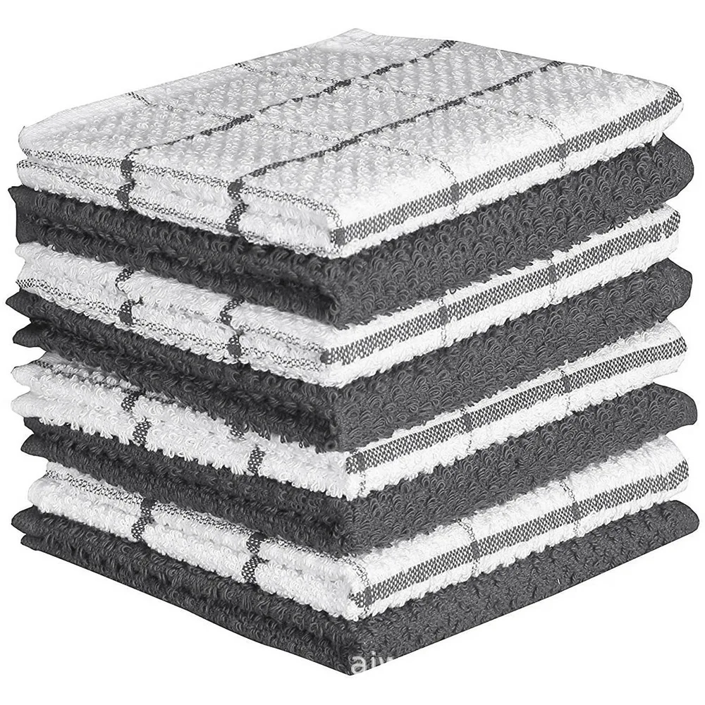 Plaid Cotton Kitchen Dish Cloths, Kitchen Rags, Hand Towel, Super Soft and Absorbent Washcloths,12x12in, 6 Packs
