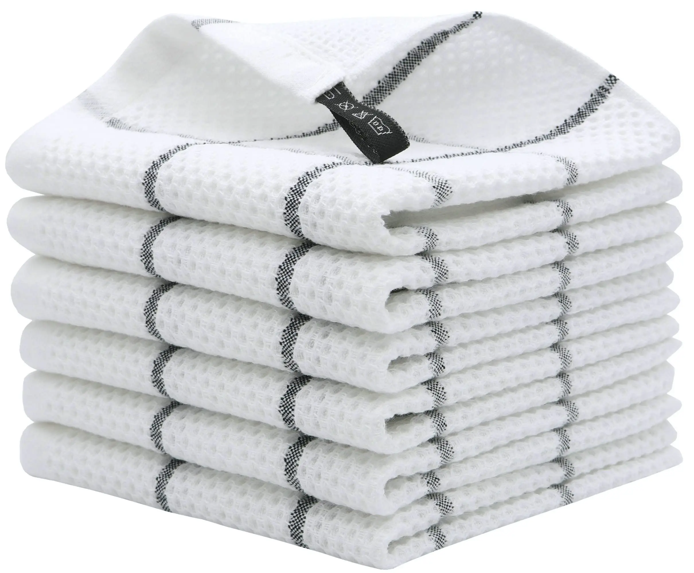 Waffle weave dish towels extra soft, more durable and absorbs fluids quickly to tackle all of your drying and cleaning kitchen task.