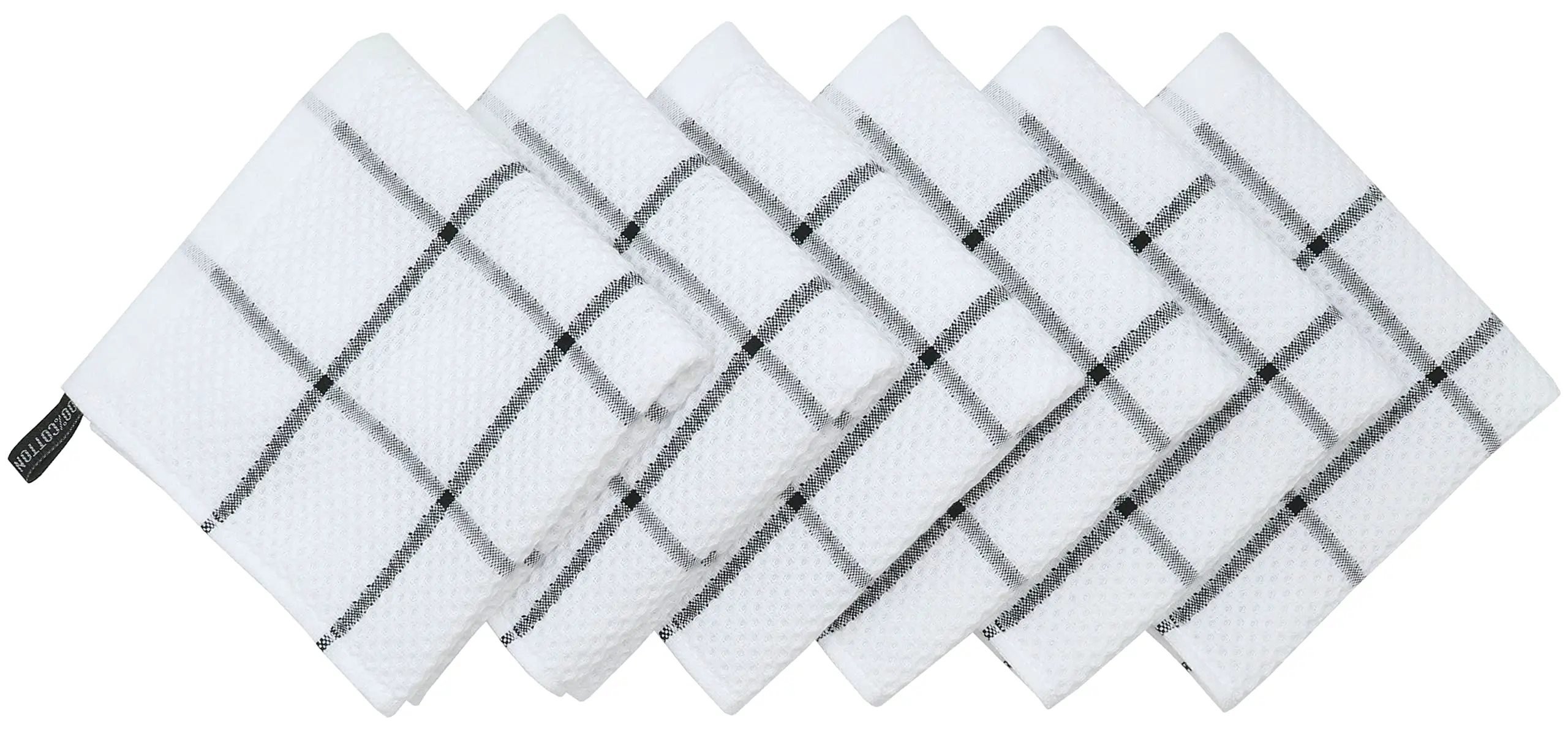 The set includes 6 pack cotton dish cloths, size 12 x 12 inches.