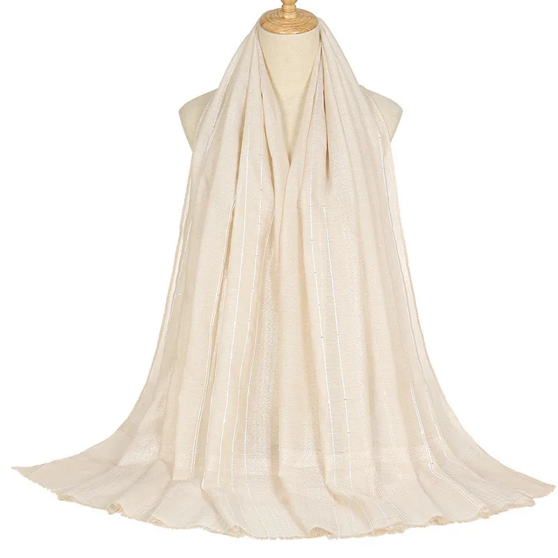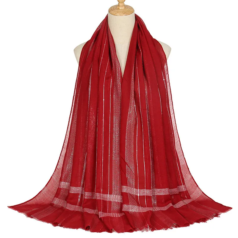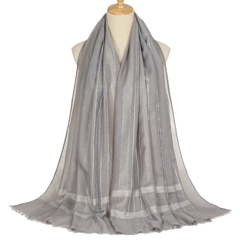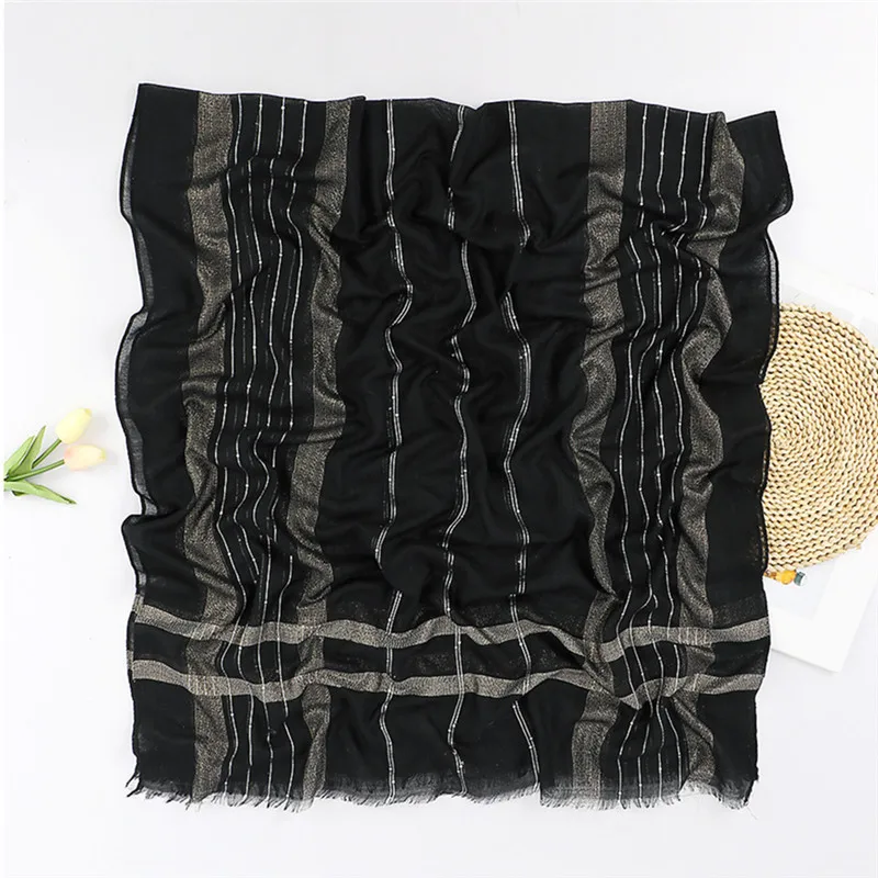 Plain Lurex Glitter Sequin Striped 100% Polyester Fringe Shawl Scarf Lady High Quality Wrap Pashmina Stole Bufandas Muslim Hijab