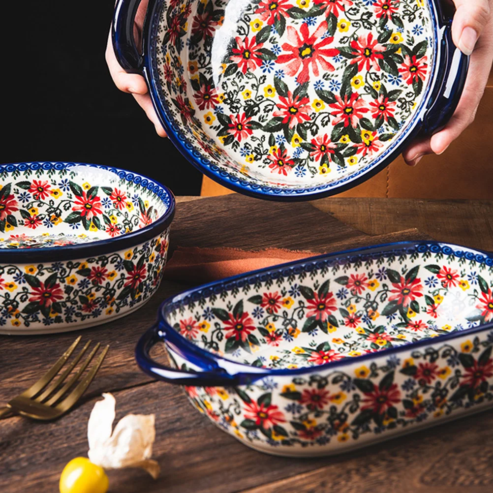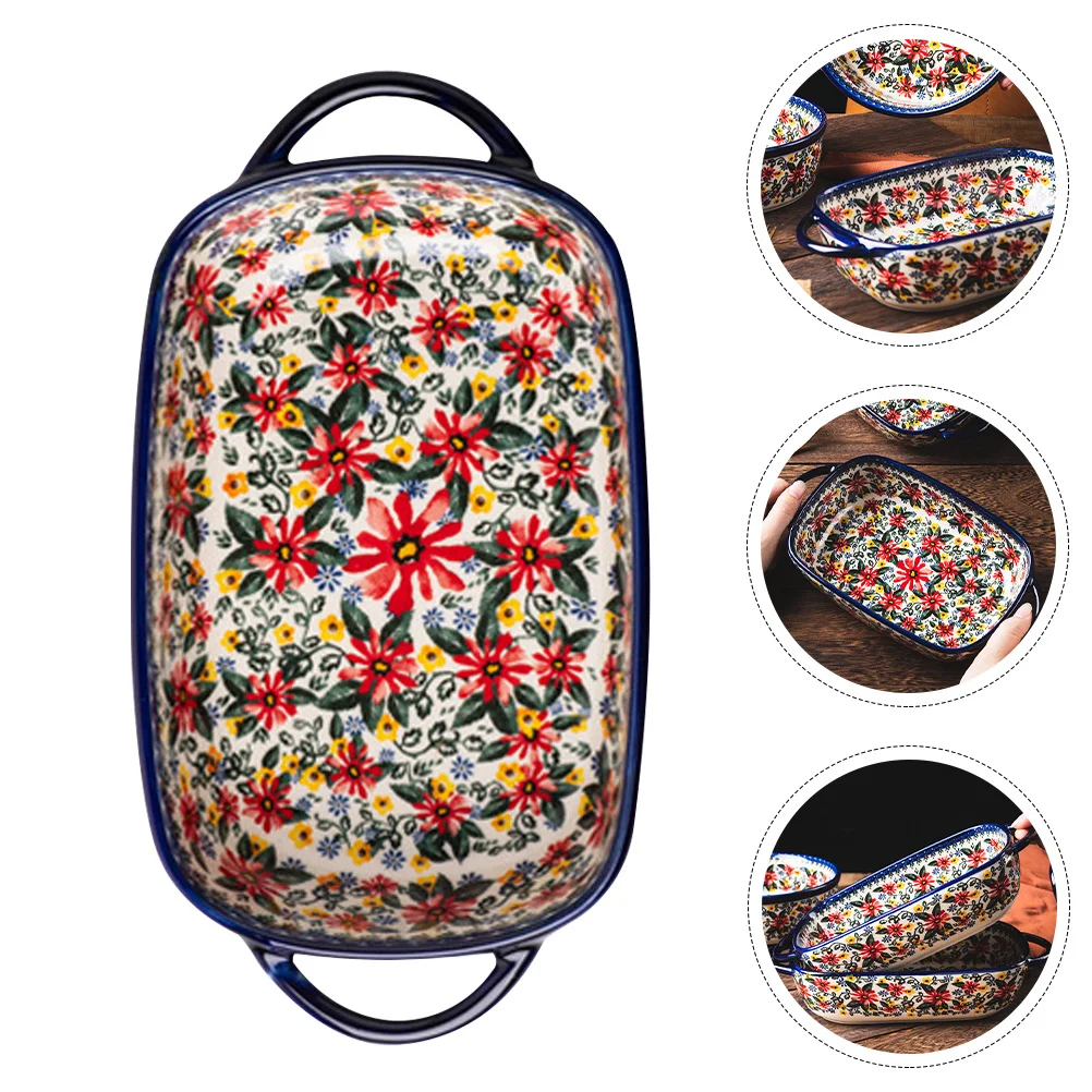 Rectangular Ceramic Soup Bowl Multi Purpose Baking Dish Household Bakeware Food Tray Serving Plate Kitchen Accessory Storage Pan