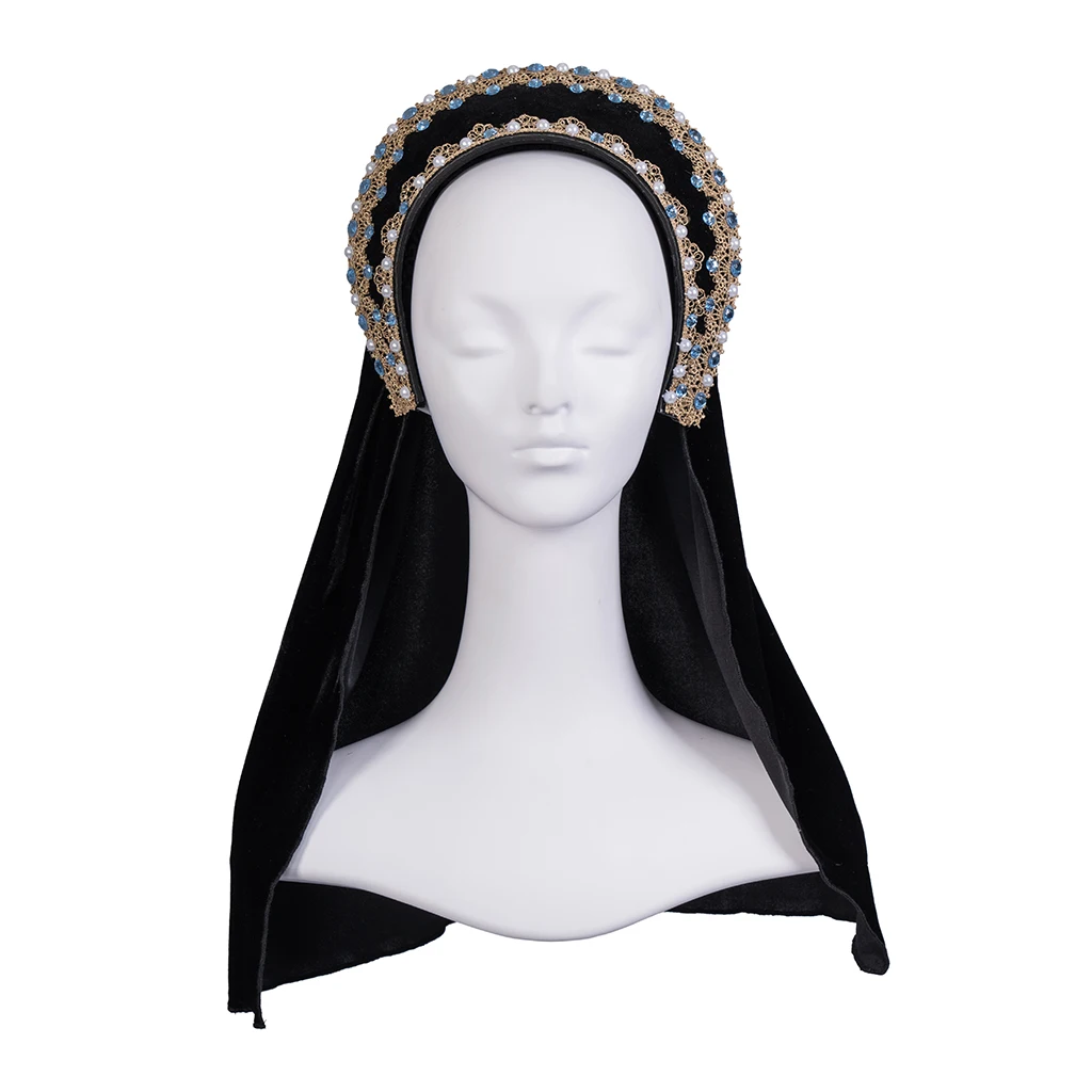 Renaissance Tudor Crown Cap Anne Boleyn Cosplay Costume Accessories Medieval Headband Coronet Headgear for Women Queen