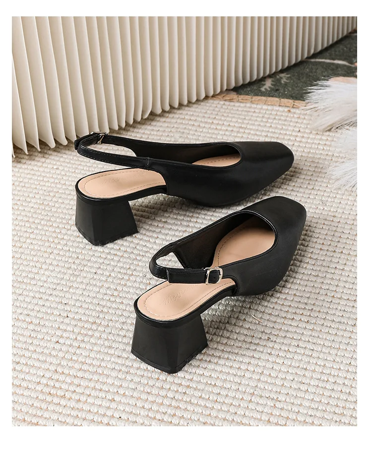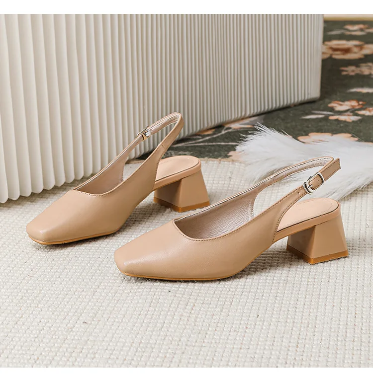 shoes suqare toe leather sandals women thick high heels summer shoes back strap green big size 43