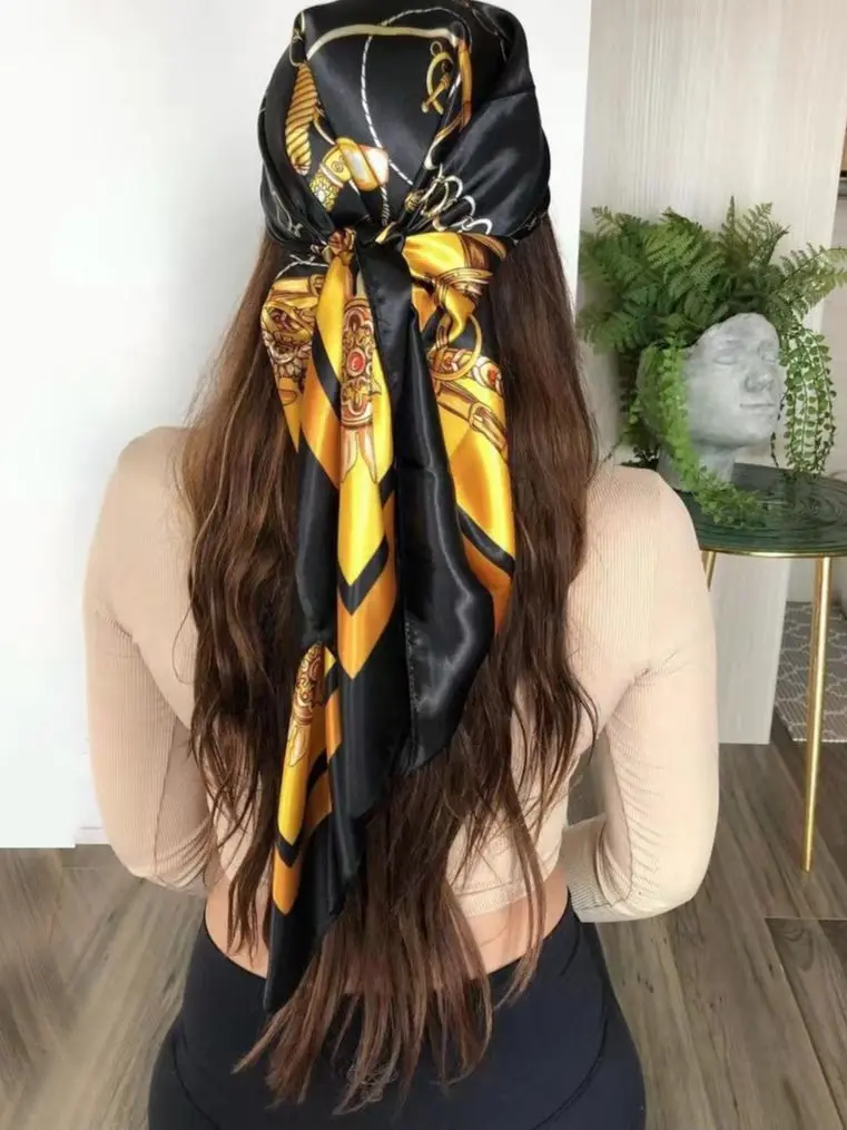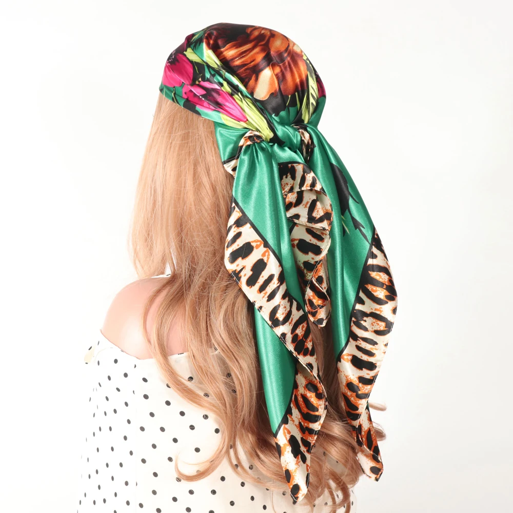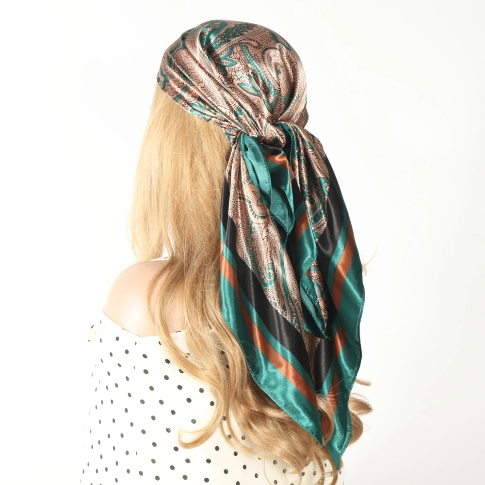 Silk Head Scarf Women Luxury Fashion Hair Scarve Summer Foulard Femme Satin Shawl Kerchief 90cm Square Headscarf Bandana Cheveux