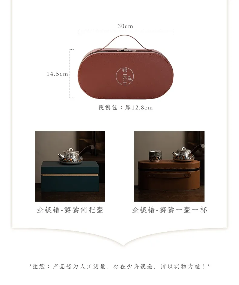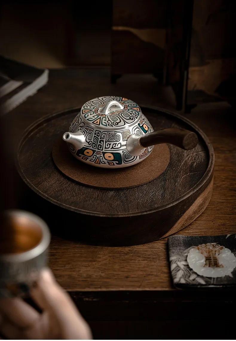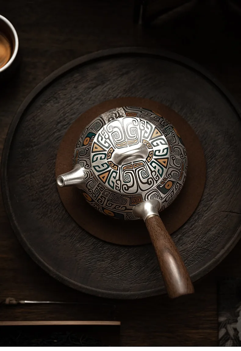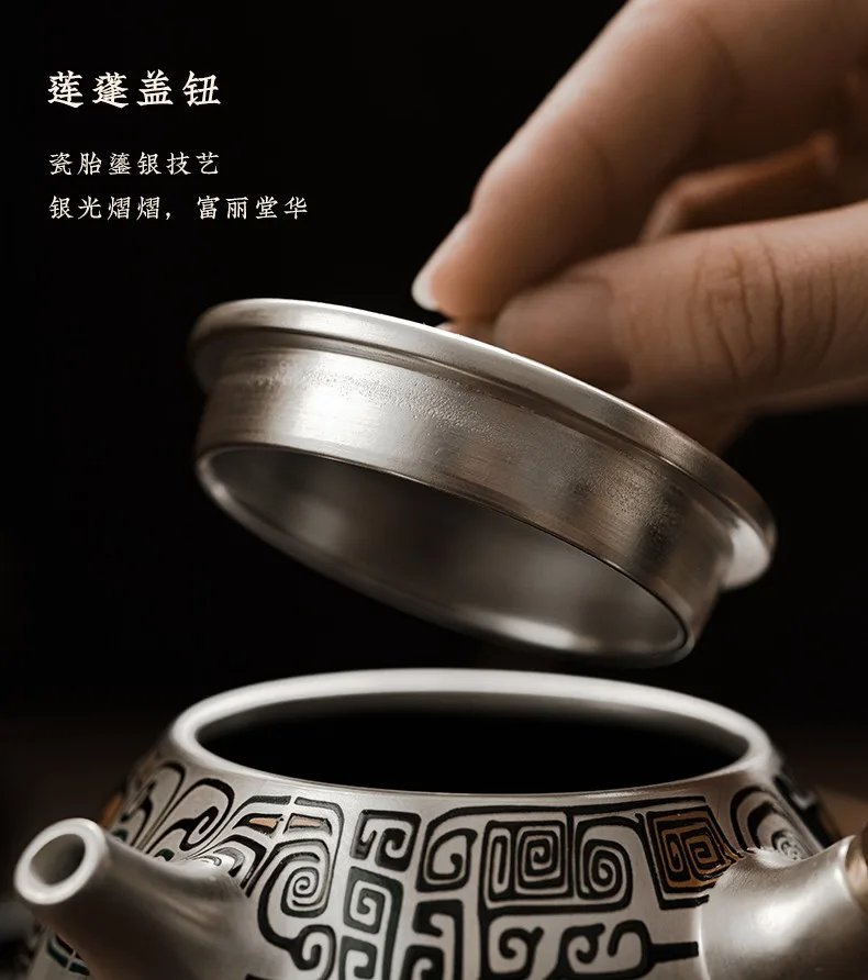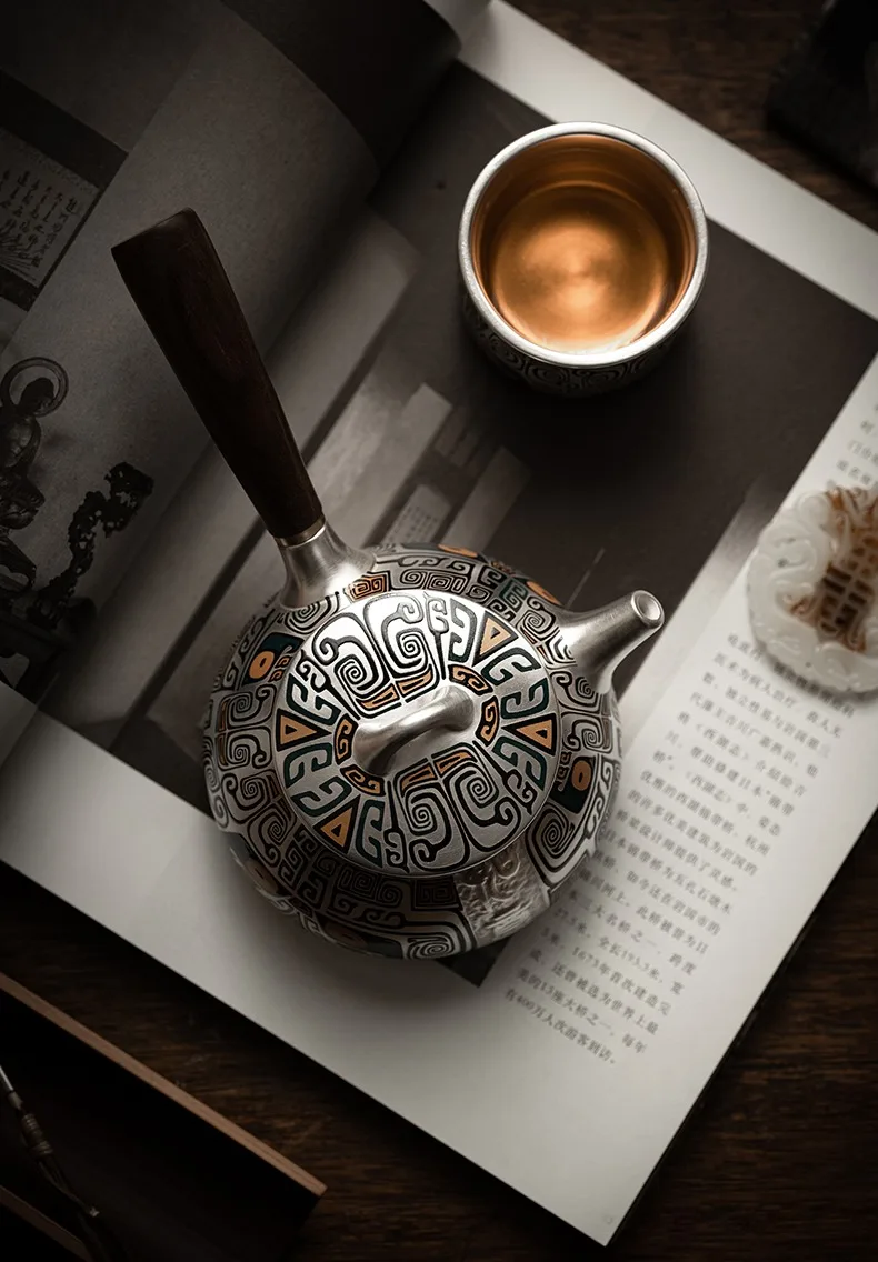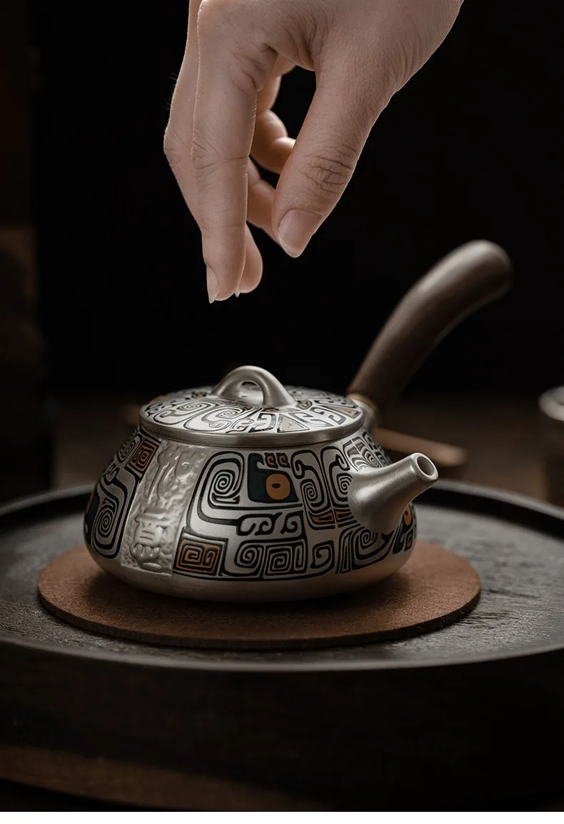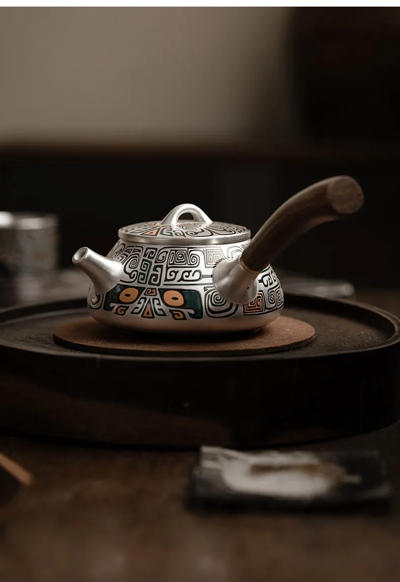 Silver Tea Set 999 Pure Silver Side Handle Stone Ladle Teapot Handmade Gilded Silver Teapot Household Kung Fu Teapot