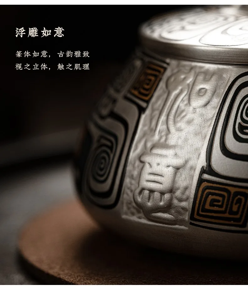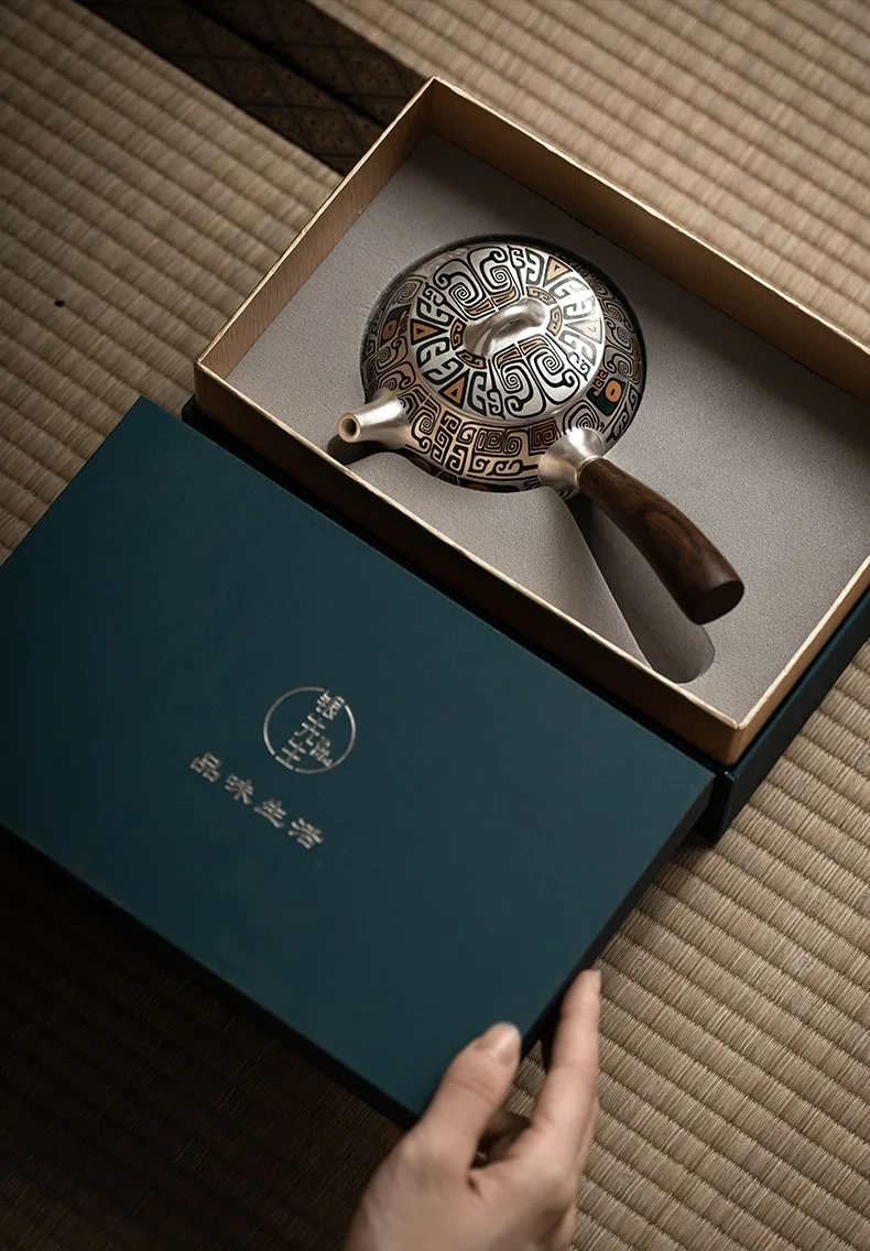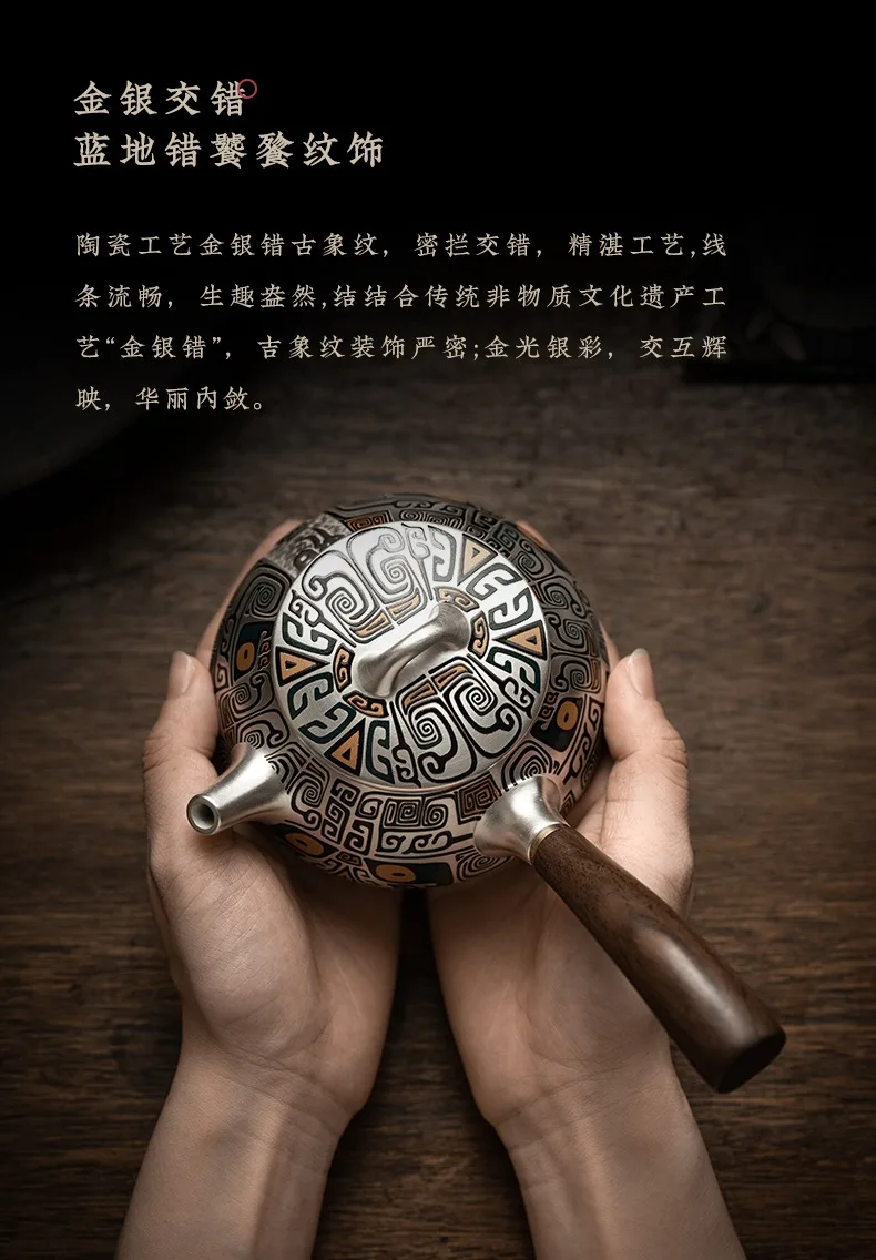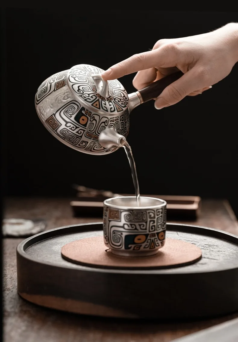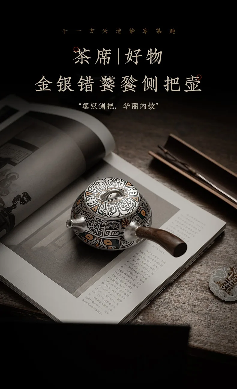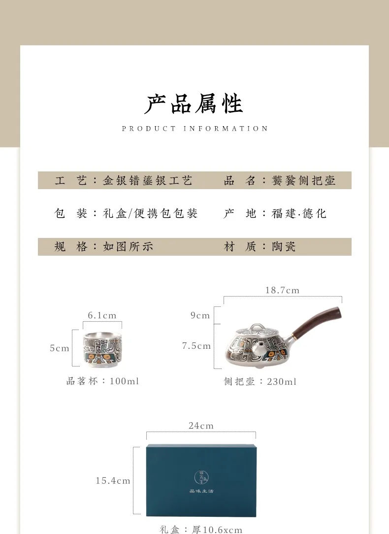 Silver Tea Set 999 Pure Silver Side Handle Stone Ladle Teapot Handmade Gilded Silver Teapot Household Kung Fu Teapot