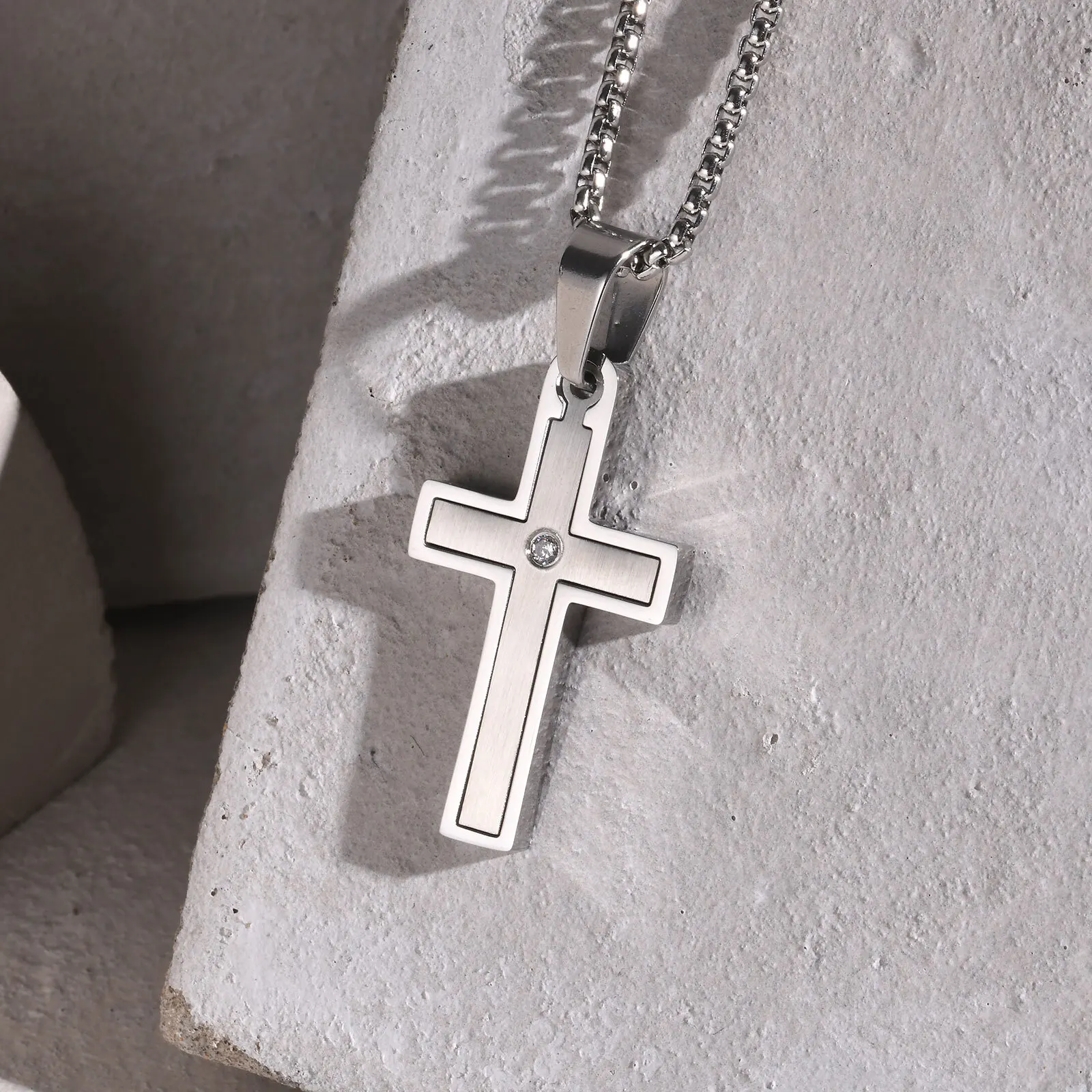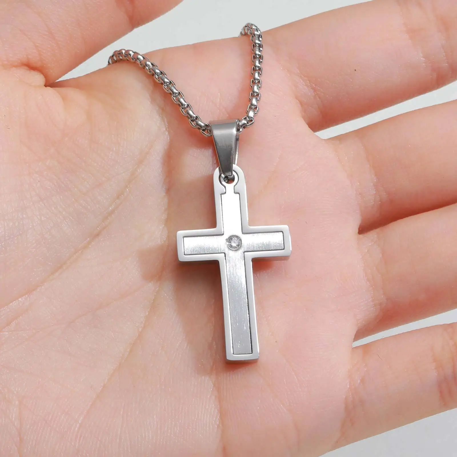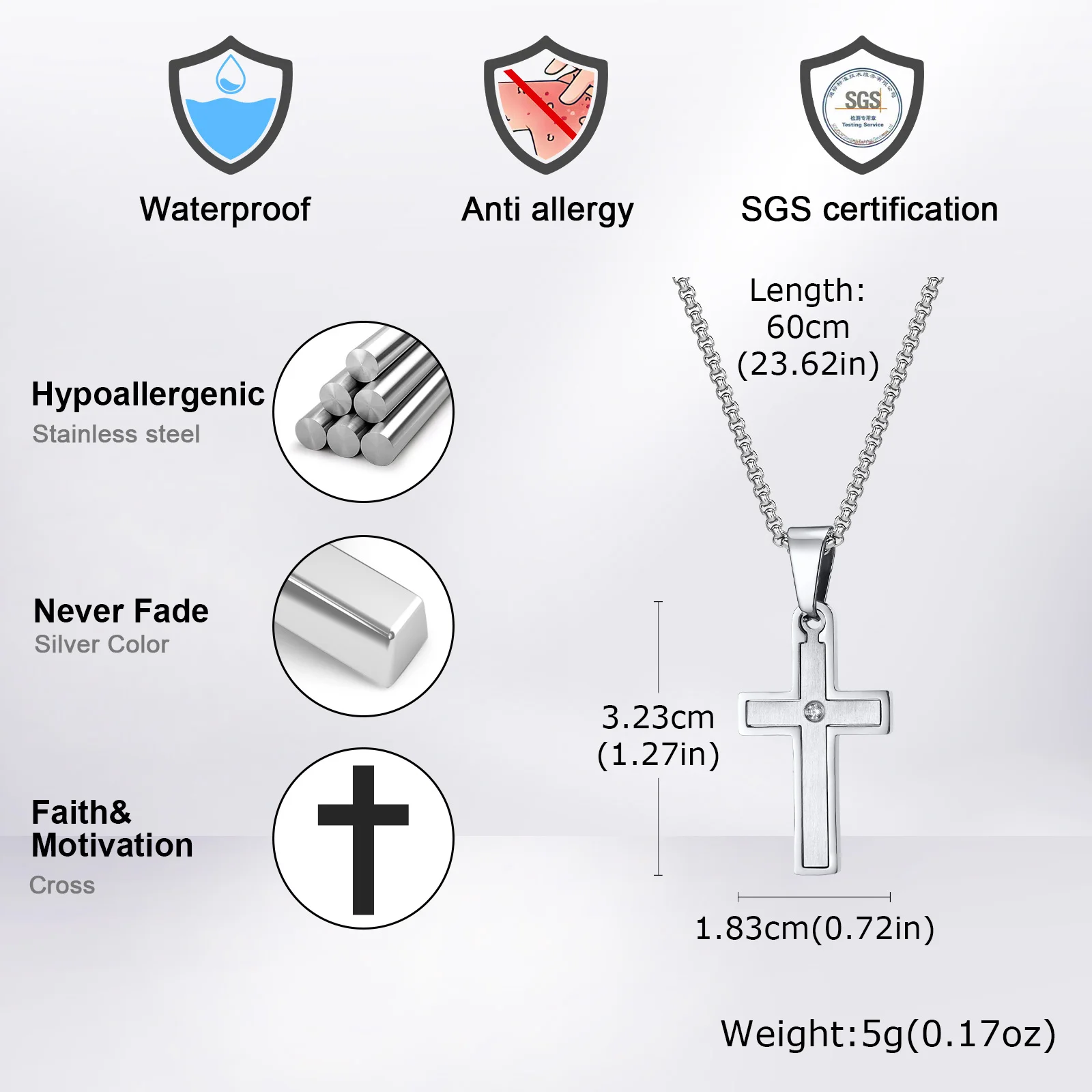 Simple Mens Cross Necklace,Stainless Steel Pendant Necklaces,Minimalist Prayer Christian Jewelry Gifts