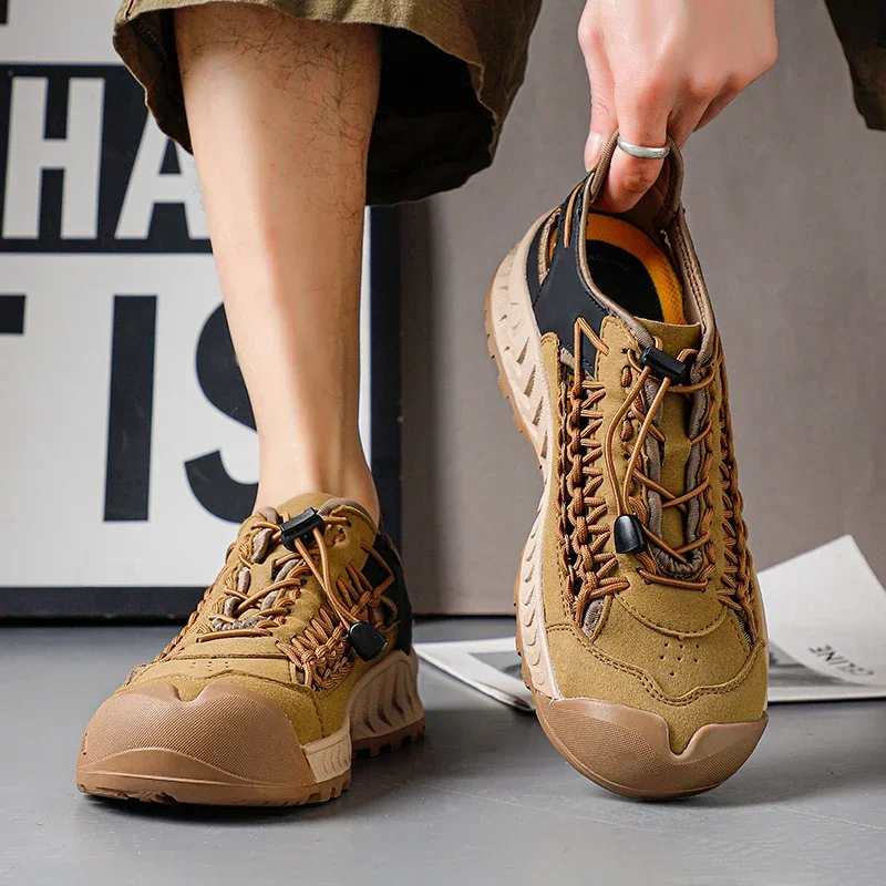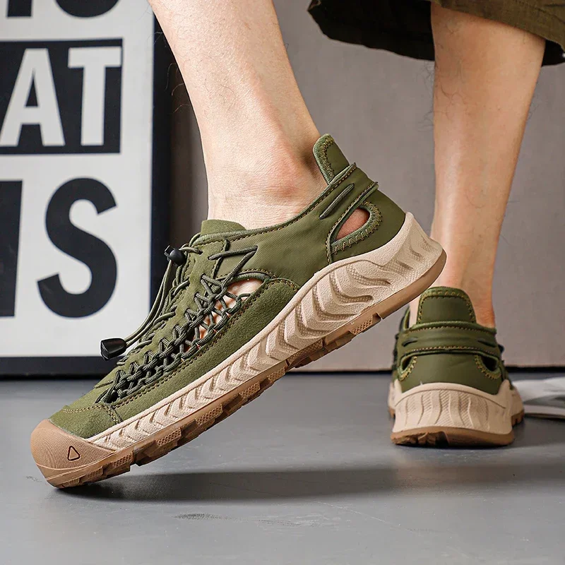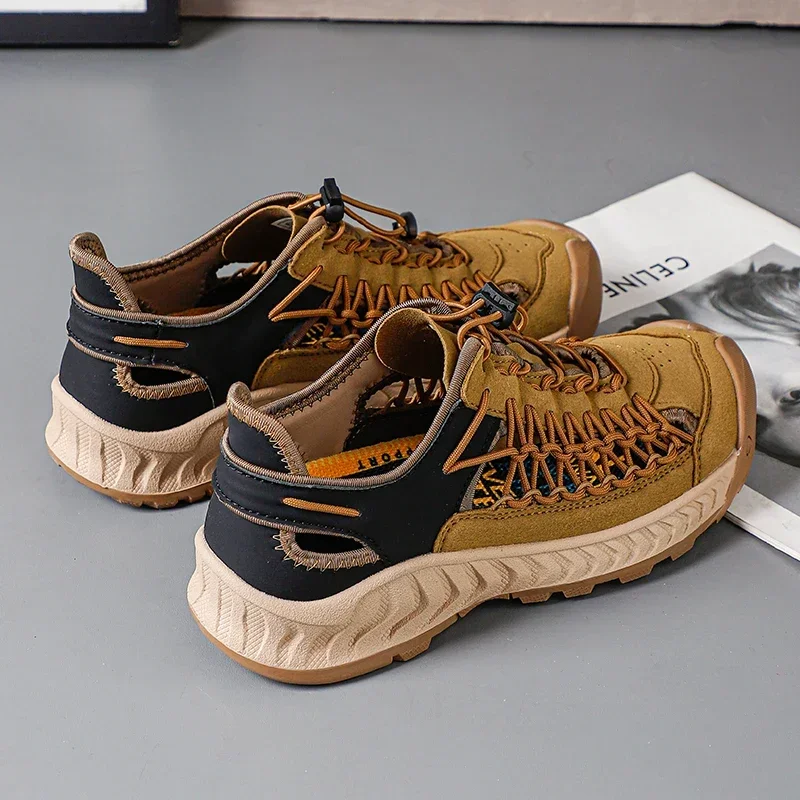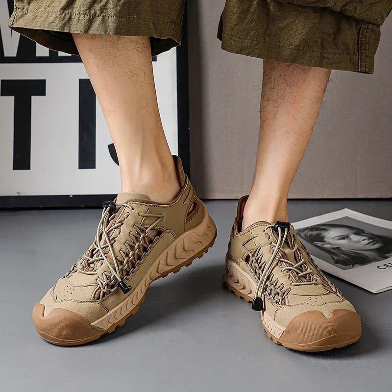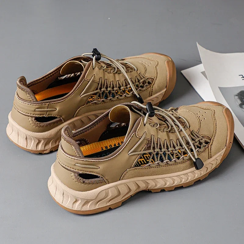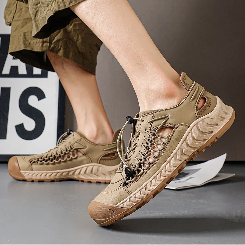 Summer Men Sandals Genuine Leather Casual Sandals Outdoor Antiskid Designer Round Toe Sandals Breathable Waterproof Beach Shoes
