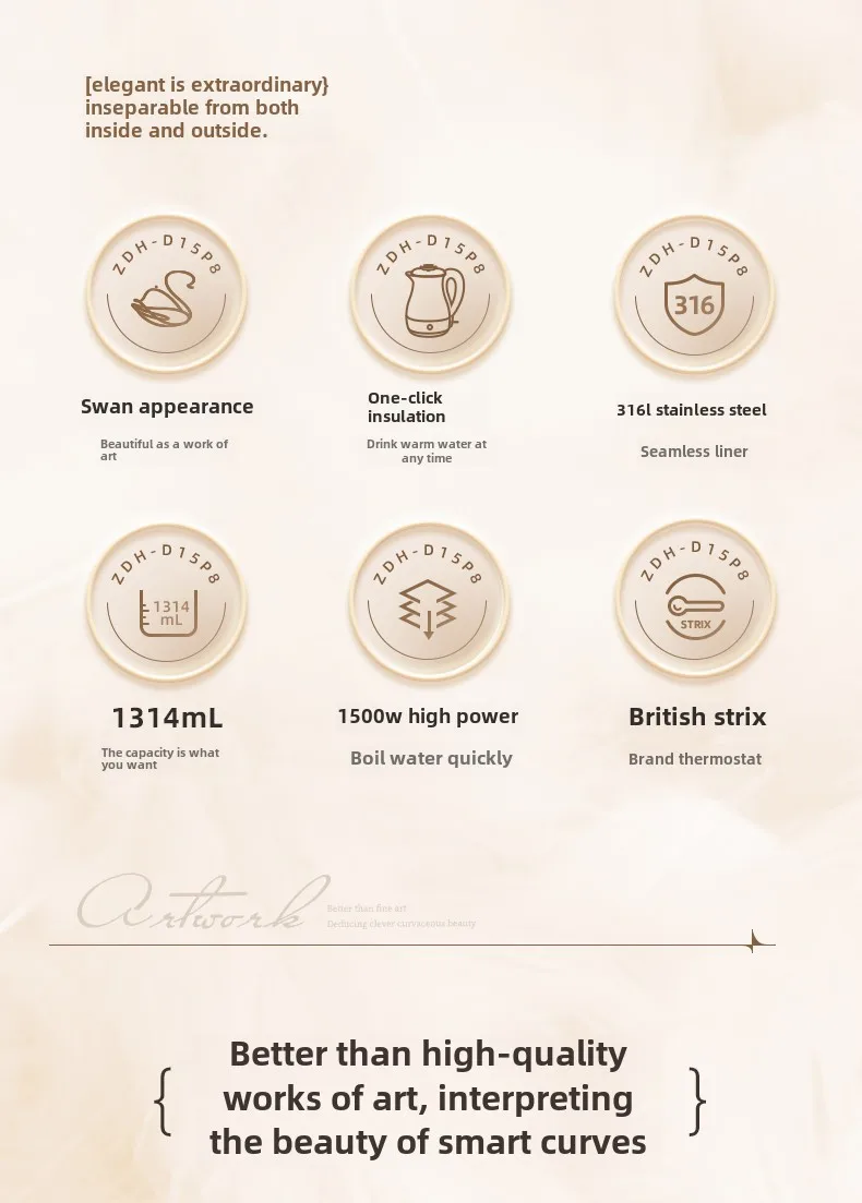 Swan Pot Household Kettle Thermal Insulation Integrated 316L Stainless Steel Internet Box Constant Temperature Electric Kettle